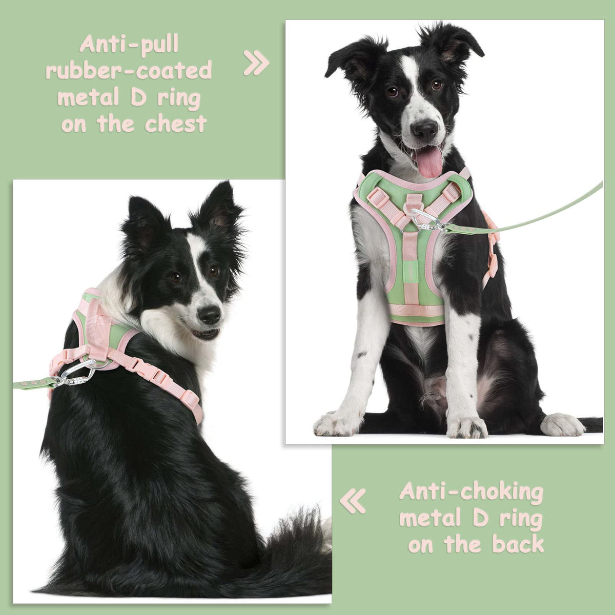 Wolfone No Pull Dog Harness Adjustable Soft Padded Pet Vest With Control Handle Adorable Daily Harness For Dogs(Mint Green M)