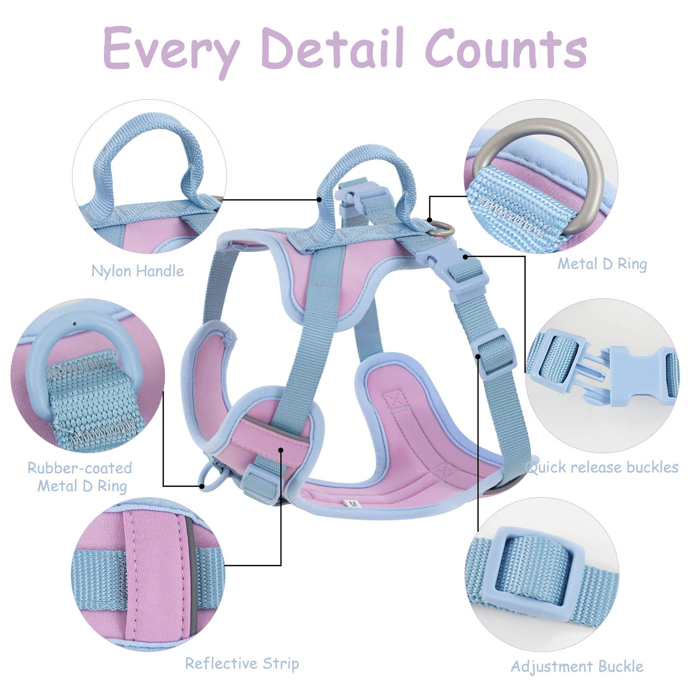 Wolfone No Pull Dog Harness Adjustable Soft Padded Pet Vest With Control Handle Adorable Daily Harness For Dogs(Sweet Lilac M)