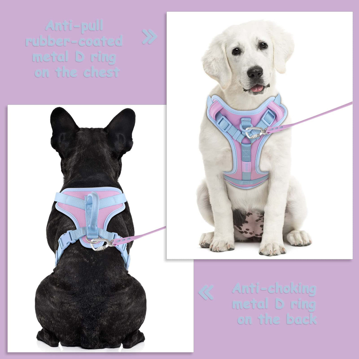 Wolfone No Pull Dog Harness Adjustable Soft Padded Pet Vest With Control Handle Adorable Daily Harness For Dogs(Sweet Lilac Xs)