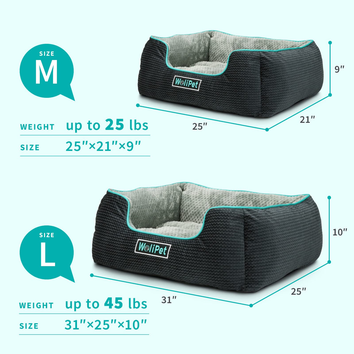Wolipet Rectangular Dog Bed Is A Safe Nest For Puppy And Kitten. The Dog Bed Sleeping Area Is Made Of Pebble Plush, It'S Very Soft And Comfortable. M Size (25''X21''X9''), Suit For Small And Medium-Sized Dogs And Large Cats, Weighing No More Than 25 Lbs (E.G., Schnauzer, Bichon Frise). L Size ( 31''X25''X10''), Suit For Medium-Sized Dogs, Weighing No More Than 45 Lbs (E.G., Shiba Lnu, Corgi, Cocker, Beagle). The Raised Edge Design Of The Sofa Bed Provides Support For Head And Neck. The Sleeping Cushion Of The Dog Bed Can Be Used On Both Sides. This Pet Bed Is Machine Washable. Its Easy To Clean And Handle Hairs. Please Wash It Gently In Cold Water, And Dry In Low Temperature. The Low Entrace Design Is Convenient For Dogs, Perfect For Curled Up Pets, It'S Very Important For Old Dogs. Ingenious Cutting, Improved Sewing Process, Sufficient Filler, High Quality White Fiber, Fluffy And Good Rebound, Not Easy To Collapse. Non Slip Bottom, Prevent Sliding, Provide More Comfortable And Stable Sleep, Good Sleep Can Promote The Health Of Pets, Extend The Life Of Pets. After Removing The Vacuum Package, Gently Knead And Pat To Fluff. If You Put The Whole Dog Bed In The Dryer On A Low Temperature For 2 Minutes, It Will Quickly Become Fluffy. Please Wait Patiently For 24 To 72 Hours, Adjust To A Satisfactory Shape, Your Pet Will Enjoy It Very Much.