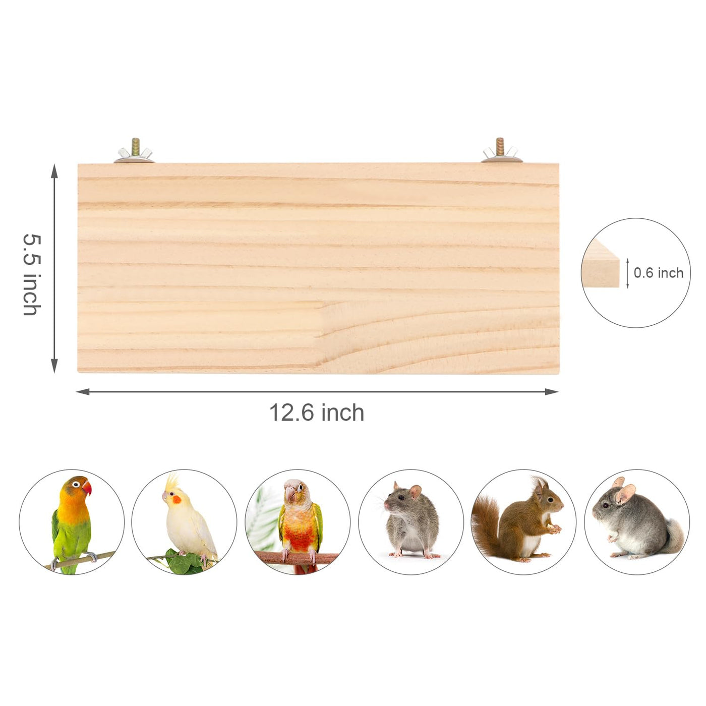 Specifications: Material: Wood Size:S: 11X5.1X0.5Inch / 28X13X1.2Cm M: 12.6X5.5X0.6Inch / 32X14X1.5Cm M1: 12.2X5.5X0.6Inch / 31X14X1.5Cm Features: Equipped With Wing Nuts, Easily Attaches To Any Cage. Add A Natural Look To Your Pet'S Home, While Giving Him A Fun Spot To Play. Wooden Platform Can Be Fixed, You Can Rest Assured Of The Safety Of Small Pets. Platforms Satisfy Small Animals Natural Instincts To Be Above Ground Level For Eating Or Sleeping. Package Included: 1 X Pet Wood Platform