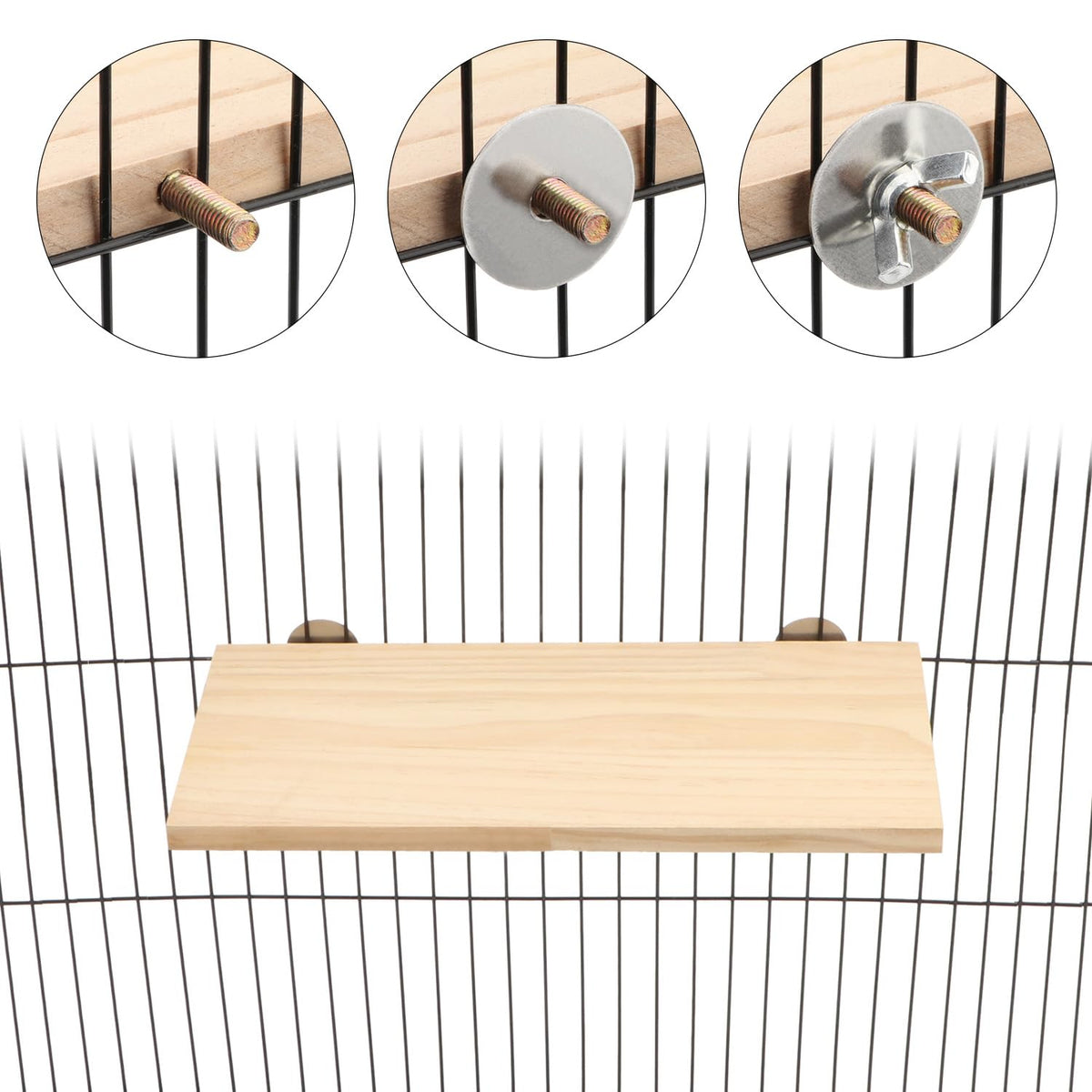 Q: How do I attach the perch to my pet's cage?A: The perch comes equipped with wing nuts and built-in bolts, allowing for easy attachment to any cage. Simply secure it in place to provide a stable platform for your pet.