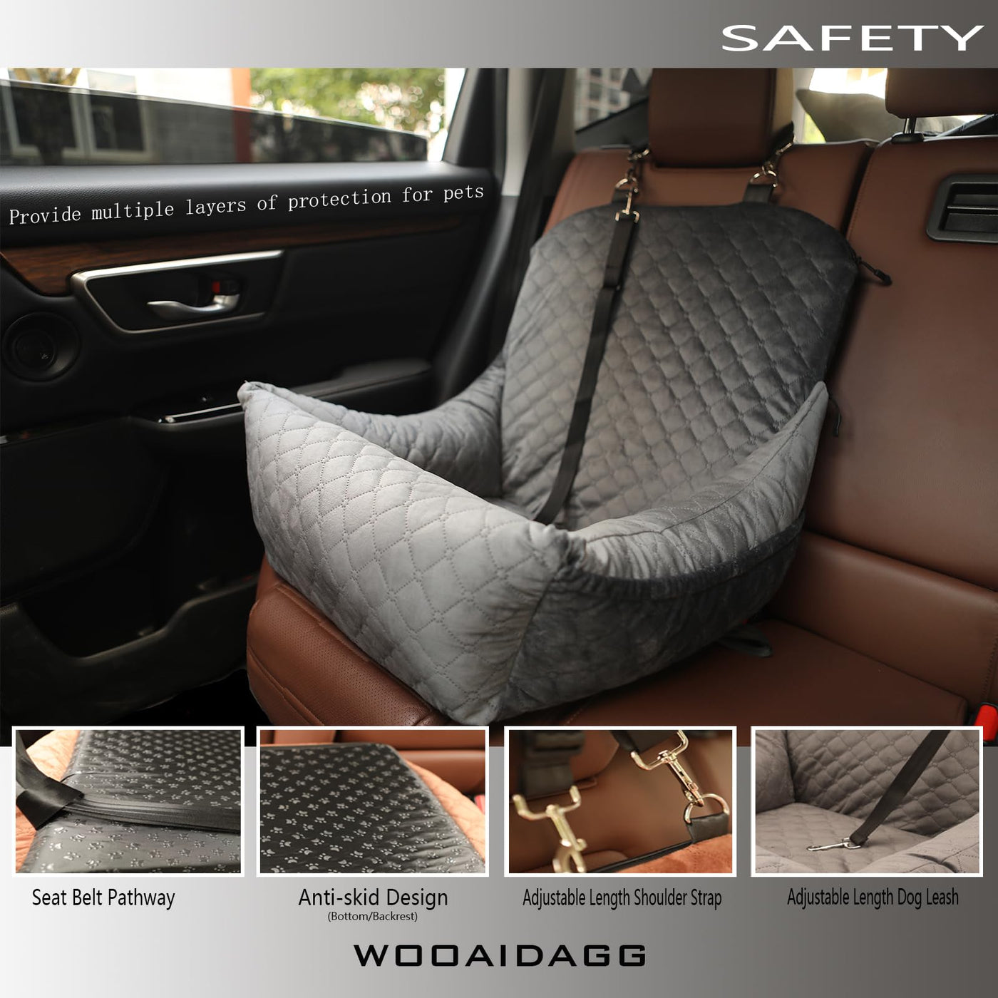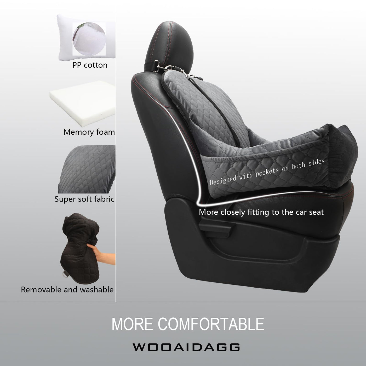 WOOAIDAGG Dog Car Seat,Fully Detachable and Washable Cover,Easy to Assemble,Comfy Cushion Fill in Memory Foam,2 Clip-On Safety L