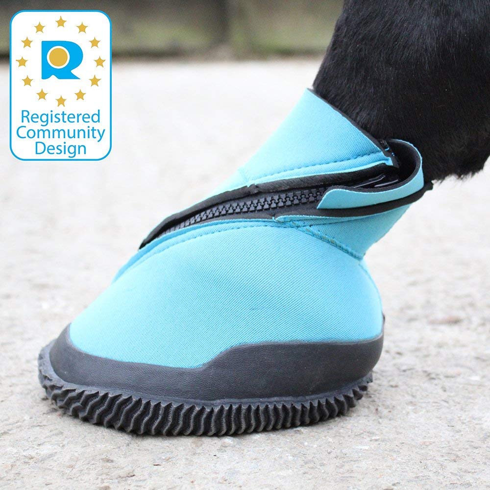 Q: What features enhance the durability and usability of this hoof boot?A: The boot features a Kevlar interior for added durability, a unique diagonal zipper design to prevent the zip from opening during use, and a tread on the sole for improved grip.