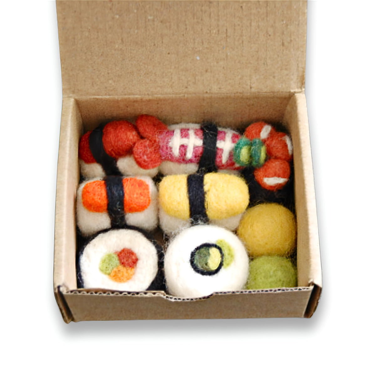 Energize Your cat: Woolbuddy cat mental stimulation toys for indoor cats delivers playful fun engaging your cats senses and mind crafted with care with vibrant colors and unique cat-inspired designs Ideal for cat lovers and boredom busting Built to last from high quality wool and odorless: These cute cat toys are designed to be durable long-lasting - minimizing the risk of breakage Free from any chemical smells Offers a tactile and comforting play Please always supervise your cats Artistry in Every cat Toy Pack: Box measuring 425x35x225inch comes with 8 cat stimulation toys Distinctive designs crafted by a real artist transforming playtime into an imaginative experience that captivates both you and your cat Active and Enriching: Woolbuddy Sushi cat Toy offers exercise and mental stimulation - self play It also supports teeth cleaning The fluffy wool helps clean your cats teeth as they chew and play promoting oral hygiene in a fun manner Personal Touch with Every Toy: As a family-owned business rooted in the USA we infuse a personal touch into cat toy assortment The toys are thoughtfully packaged in a beautiful box making it an excellent gift option for any cat lover