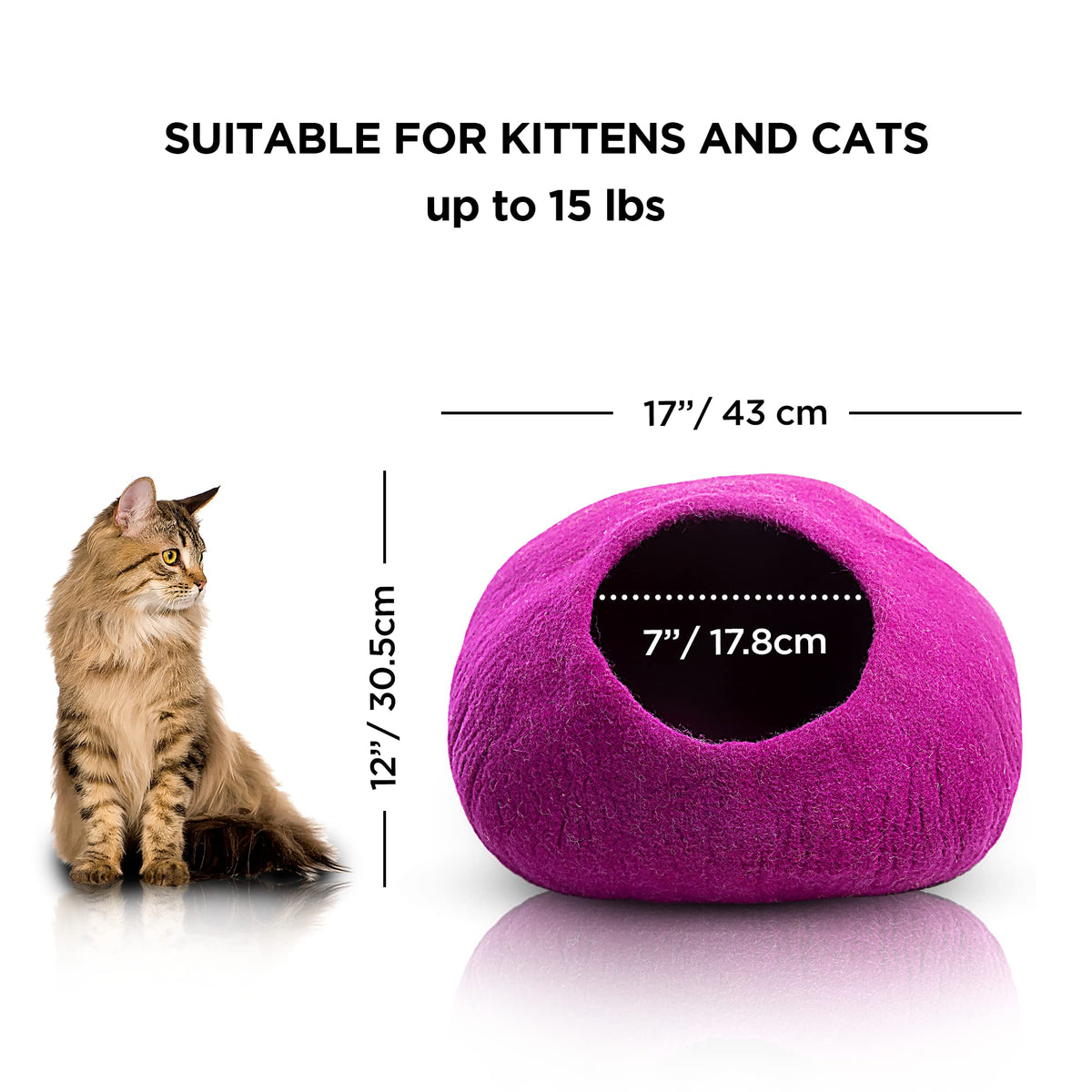 Authentic Handmade Cat Cave Bed Made With Love In Nepal. Cats Absolutely Love Our Cat Caves, And The Woolygon Brand Stands Out For Its Quality And Craftsmanship. At Woolygon, Our Mission Was To Create A Cat Beds Adored By Cats. We Wanted To Create An Eco-Cat Bed Both Beautiful And Functional. Your Cat Will Have His Own Little Place To Hide, Stay Cozy And Comfortable. Benefits: ?? Provides Warmth, Comfort, And Privacy For Your Cat. ?? Hand Made With Care And Designed To Make Your Cat Feel At Home. ?? The Merino Wool Will Keep Your Cat Warm In The Winter And Cool In The Summer. ?? Can Be Used As A Pod Or A Padded Mat On Hot Days. ?? Satisfaction Guaranteed - In The Rare Case That Your Cat Is Not Satisfied With Its Cats Cave - Simply Return It, No Questions Asked. Cats Love Woolygon Eco Kitty Caves! The Organic Wool Provides Them With A Cozy, Naturally Insulated, Safe, And Soothing Environment. The Natural Properties Of Our Organic Wool Keep Your Cats And Kittens Cleaner And Smelling Better - And When Its Time To Clean It, Its Easy To Do So With Soap And Water. Wool Kitty Caves Are Extra-Large, At 20'' - Enough For The Mightiest Kitty, Or The Most Numerous Litter! This Is Up To 3'' Larger Than Other Cat Caves. Made From 100% Organic Wool And Individually Hand Felted For Fair Wages In Ethical And Environmentally Friendly Working Conditions By Nepali Artisans In The Himalayan Valley Of Kathmandu. Why Choose Felt Cats Bed Cave Over Others: ?? Keeps A Perfect Shape Over Time Without Collapsing & Easy To Pop Back Into Shape. ?? Free Of Harsh Smells And Chemicals. ?? Perfect Size And Thickness To Keep Its Shape While Not Being Overly Heavy.