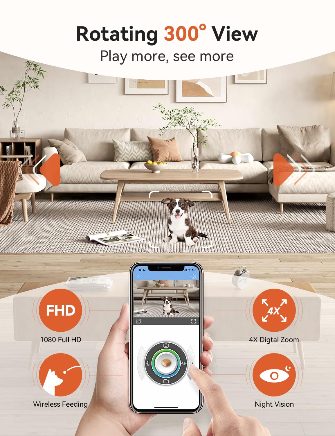 Wopet 300 Dog Camera With Treat Dispenser, New 5G , Wifi Pet Camera Treat Tossing For Cats And Dogs, 1080P Hd With Night Vision,
