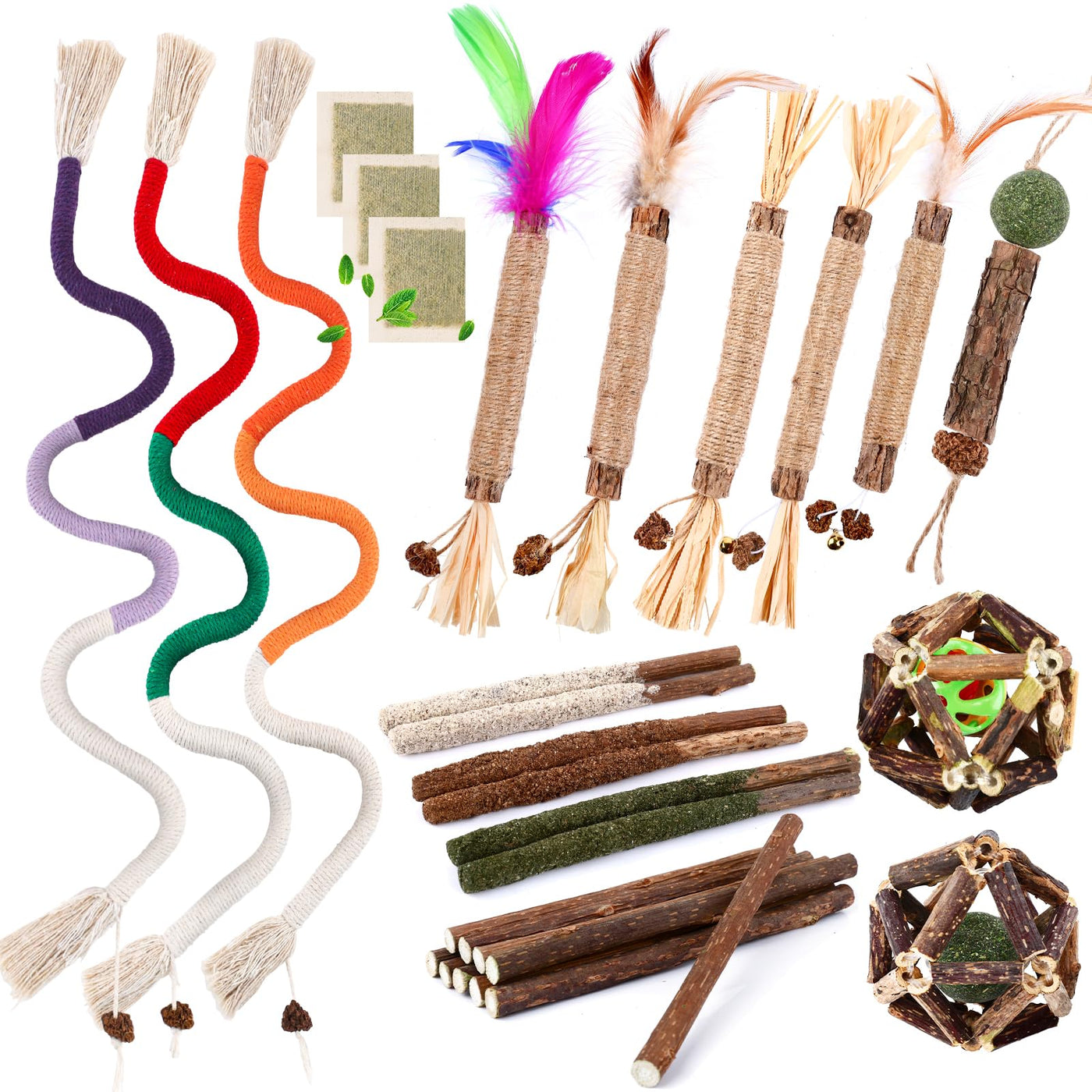 Wousedo 27 Pack Catnip Chew Toys For Cats,Cotton Sisal Rope Toys,Cat Natural Silvervine Sticks,For Cat Teeth Cleaning And Dental