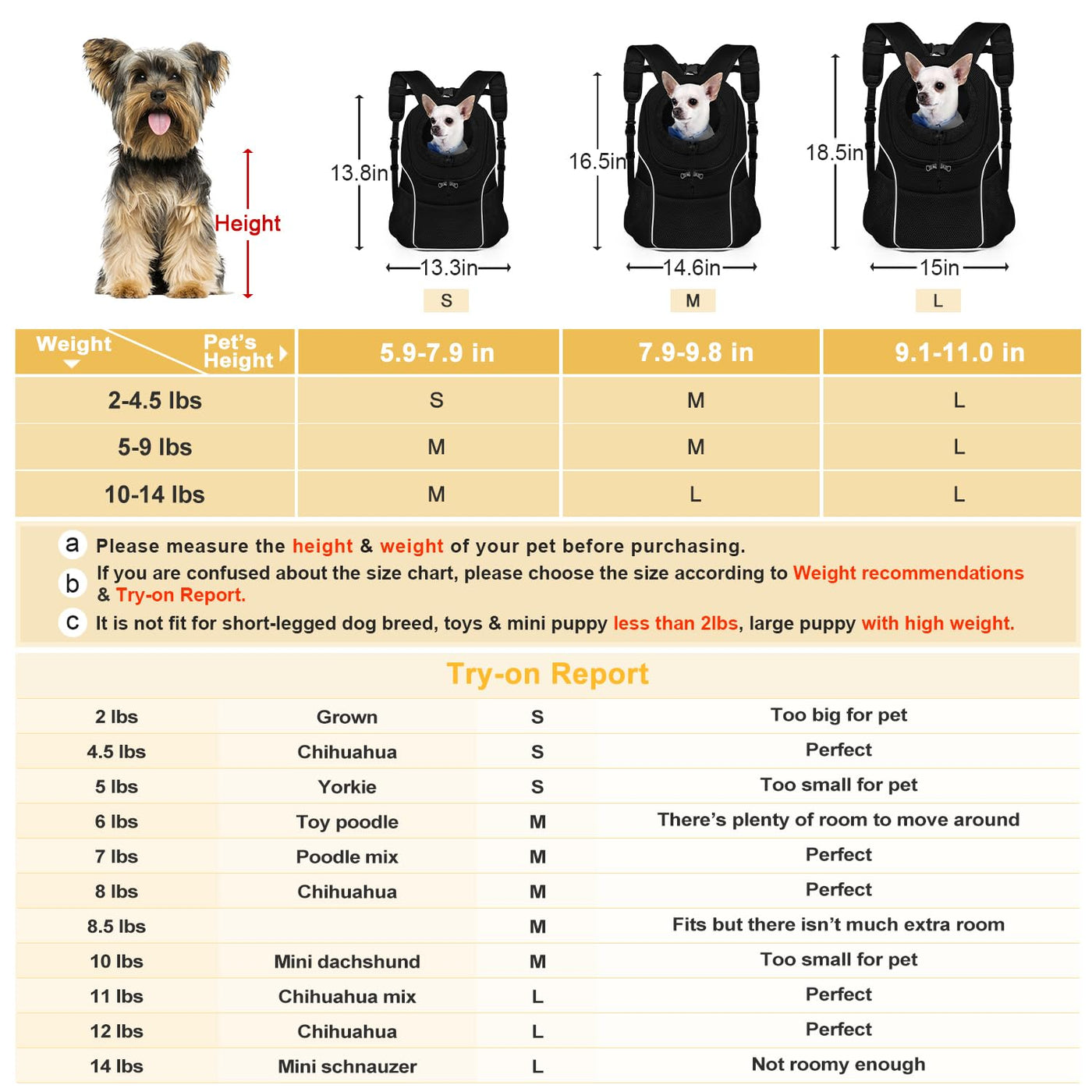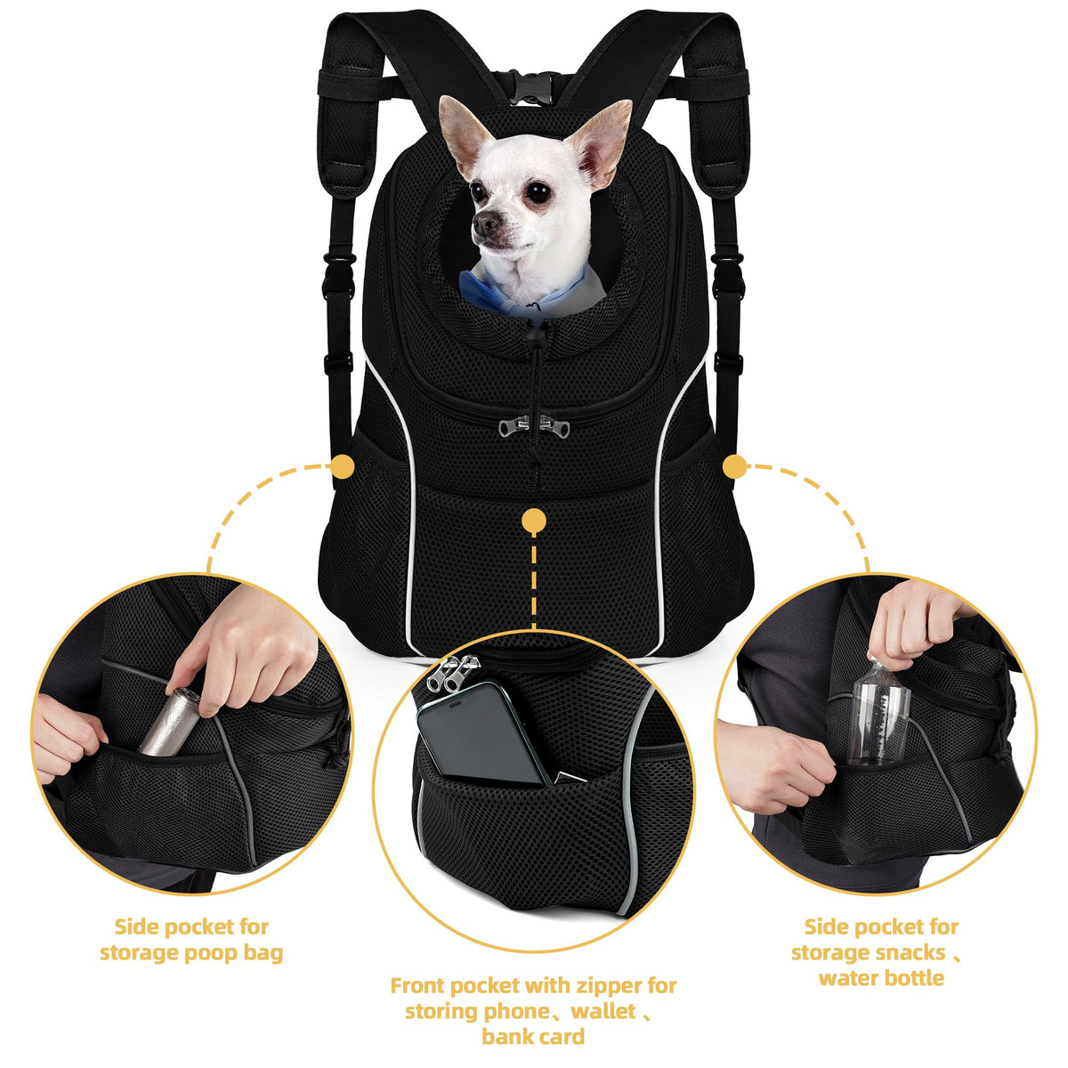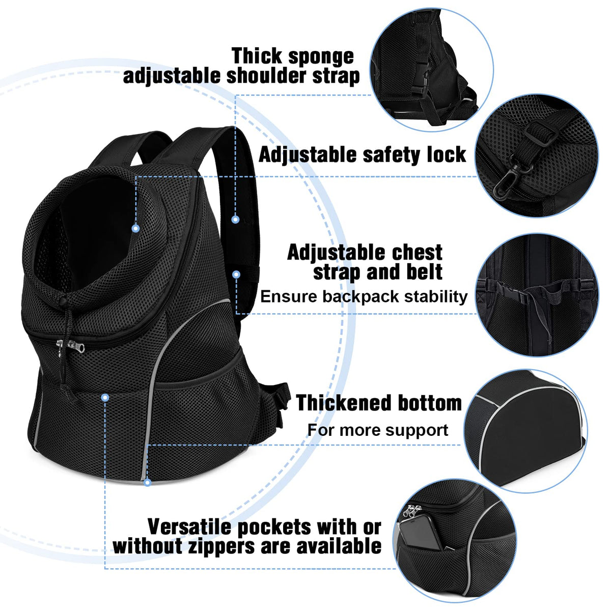 Woyyho Pet Dog Carrier Backpack Puppy Dog Travel Carrier Front Pack Breathable Head-Out Backpack Carrier For Small Dogs Cats Rabbits (L (Up To 14 Lbs), All Black)