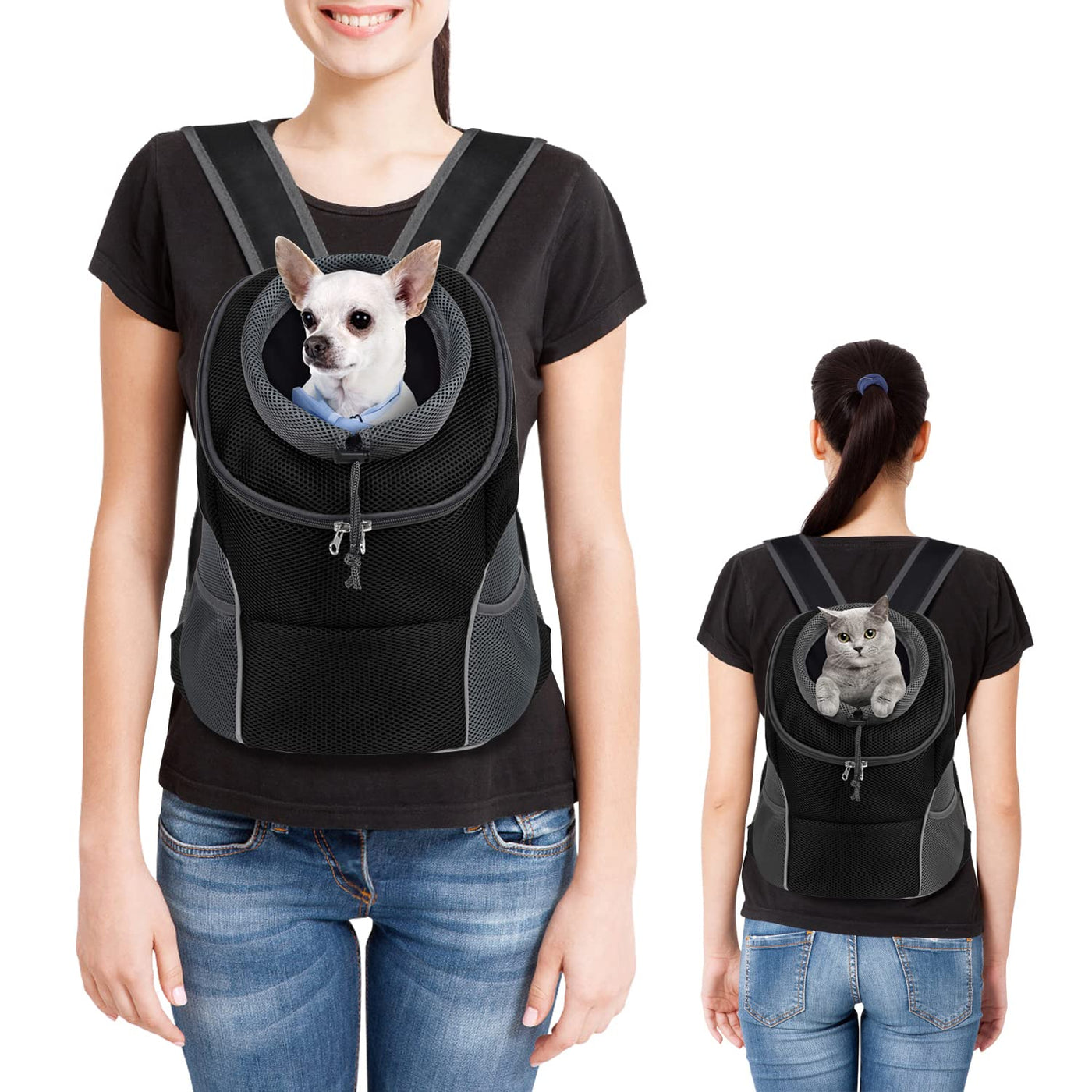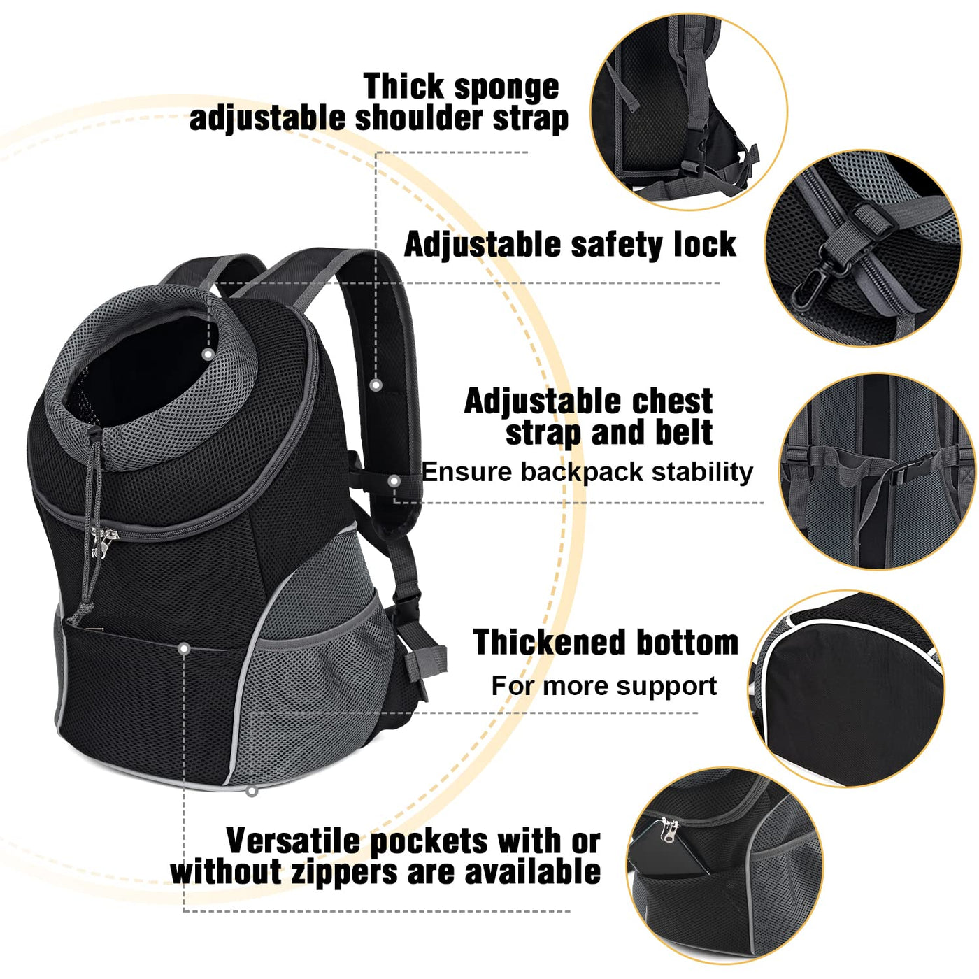 Woyyho Pet Dog Carrier Backpack Puppy Dog Travel Carrier Front Pack Breathable Head-Out Backpack Carrier For Small Dogs Cats Rabbits (L (Up To 14 Lbs), Black)