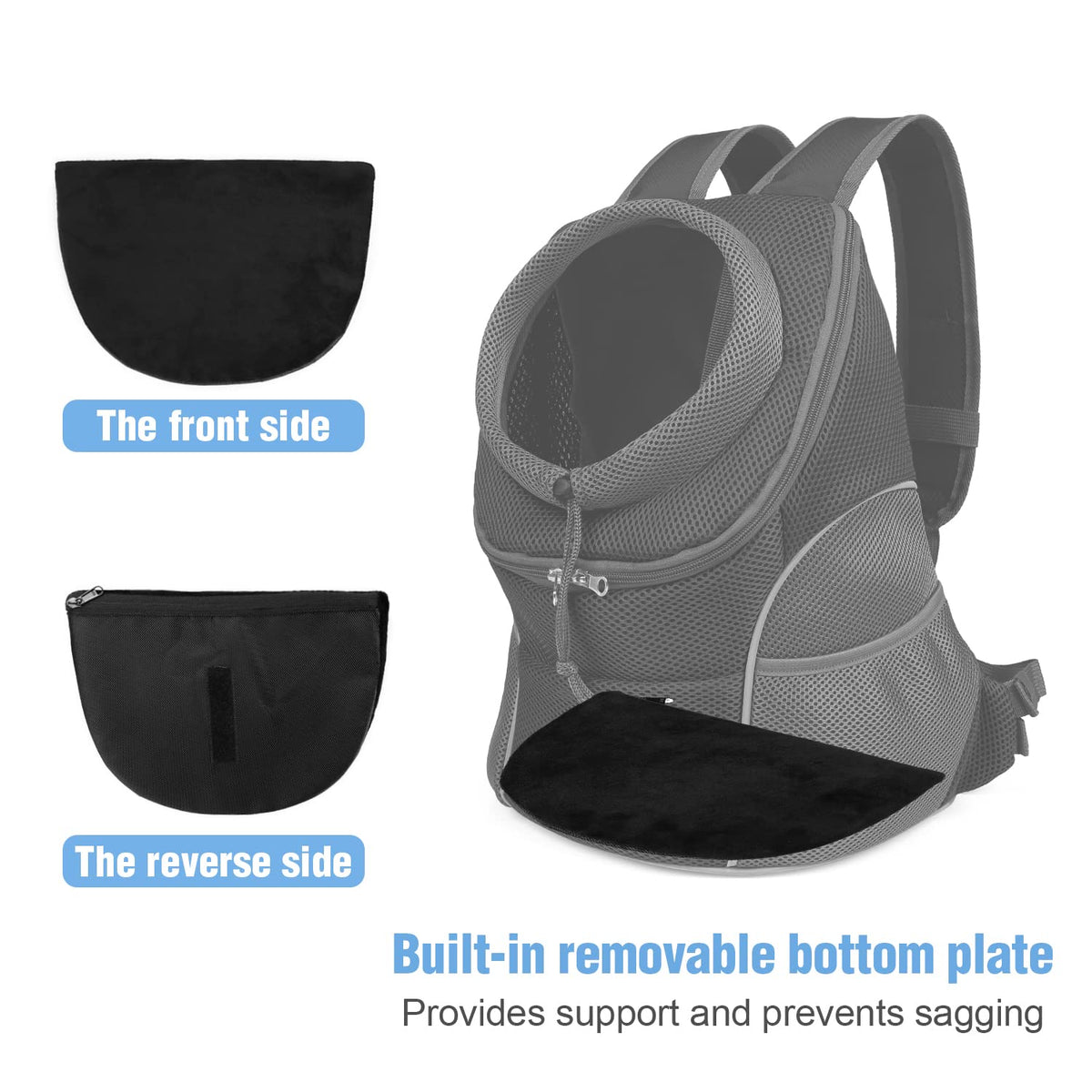 lease Note SizeSize L:15(L)*91(W)*185(H) recommend weight from 10 to 14 lbs(*Please refer to the SIZE cHART in Picture 3 before purchasing*) The dog carrier backpack adjustable range of the shoulder strap is 236 to 394 inches the chest strap can be adjusted up to 138 inches and the waist strap can be adjusted up to 339 inches suitable for most users eck hole Drawstring DesignWOYYHO dog carrier backpack made from breathable mesh and polyester fiber The adjustable neck hole window design on the top allows your pet to keep the head extended making it ventilated and visible interacting and communicating with you Thick sponge filled & Removable bottom plateThe dog front carrier backpack is made of thick sponge and breathable mesh cloth which is ergonomic and very comfortable reducing the burden on the shoulders and back of the owner Soft and removable washable pads and removable solid bottom covers add comfort prevent sagging maintain stability and are easier to replaceclean Reliable Safety & Detail Design Puppy carrier backpack built-in security leash with clamp can connect with pets collar which will prevent pet get out and protect the safe of pet Pet hiking carrier backpack comes with both waist and chest buckles to give you extra support and prevents falling Pet front backpack side and front pockets help store a collapsible pet bowl snacks poop bag mobile phones and other necessities Enjoy Travel with PetsWOYYHO Pet front backpack has a large capacity of space easily fit dog cat chihuahua Mini poodle Yorkshire Mini Schnauzer Shih Tzu Pomeranian Havanese Mini teddy Miniature Pinscher and most other smallmedium-sized pets Taking your pets for travel sightseeing camping hiking walking