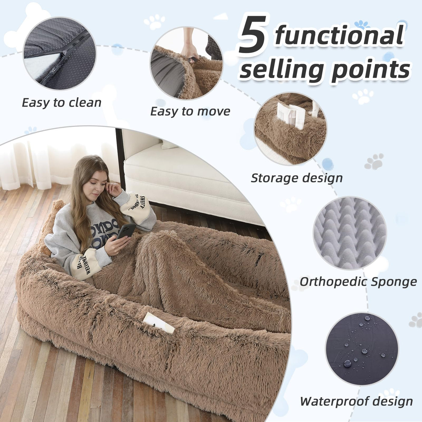 Wros Human Dog Bed, Large Dog Beds For Humans Size Fits You And Pets, Washable Faux Fur Orthopedic Human Dog Bed For People Doze