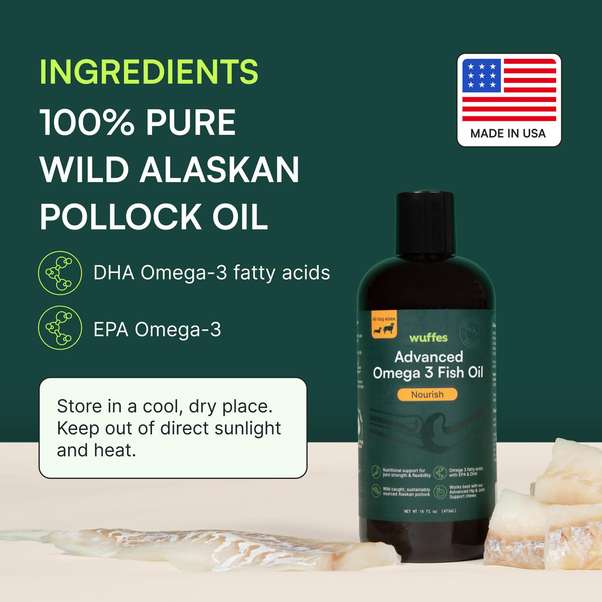 Sourced exclusively from the pristine waters of Alaska, this premium supplement is a natural powerhouse of omega-3 fatty acids, EPA, and DHA. These essential nutrients are the key to promoting not only a lustrous coat and healthy skin but also support optimal functioning of joints and connective tissue. Plus, fatty acids are vital to everyday health, the heart, and cardiovascular systems and help keep your pup in peak condition. This oil was designed to be used in conjunction with other Wuffes products to provide an additional, more concentrated source of essential omega-3s. Key Benefits: Joint Health: Provides natural nutrients that support optimal functioning of joints and connective tissue. Skin and Coat: Rich in omega fatty acids, vitamins, and minerals essential for healthy skin and coat. Heart Health: Fatty acids are vital to everyday health, the heart and cardiovascular systems. Immune System: Supports a healthy immune system & helps keep animals in peak condition.
