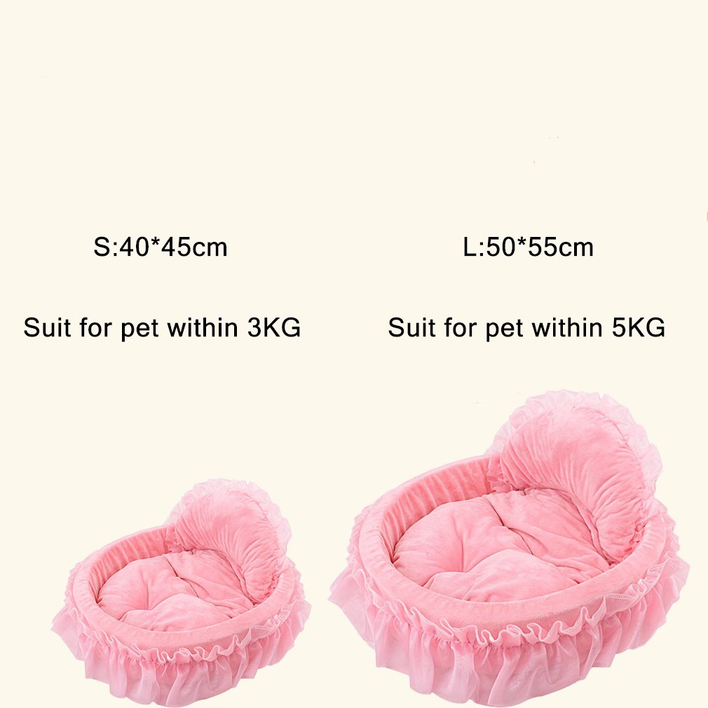Specailly designed for pets, very cute and lovely of princess style! Made of short plush fabric,soft and comfortable for pets, distachable cushion inside,easy to clean,with waterproof material on the bottom, bowknot and lace on the edge, suitable for pricess pets!