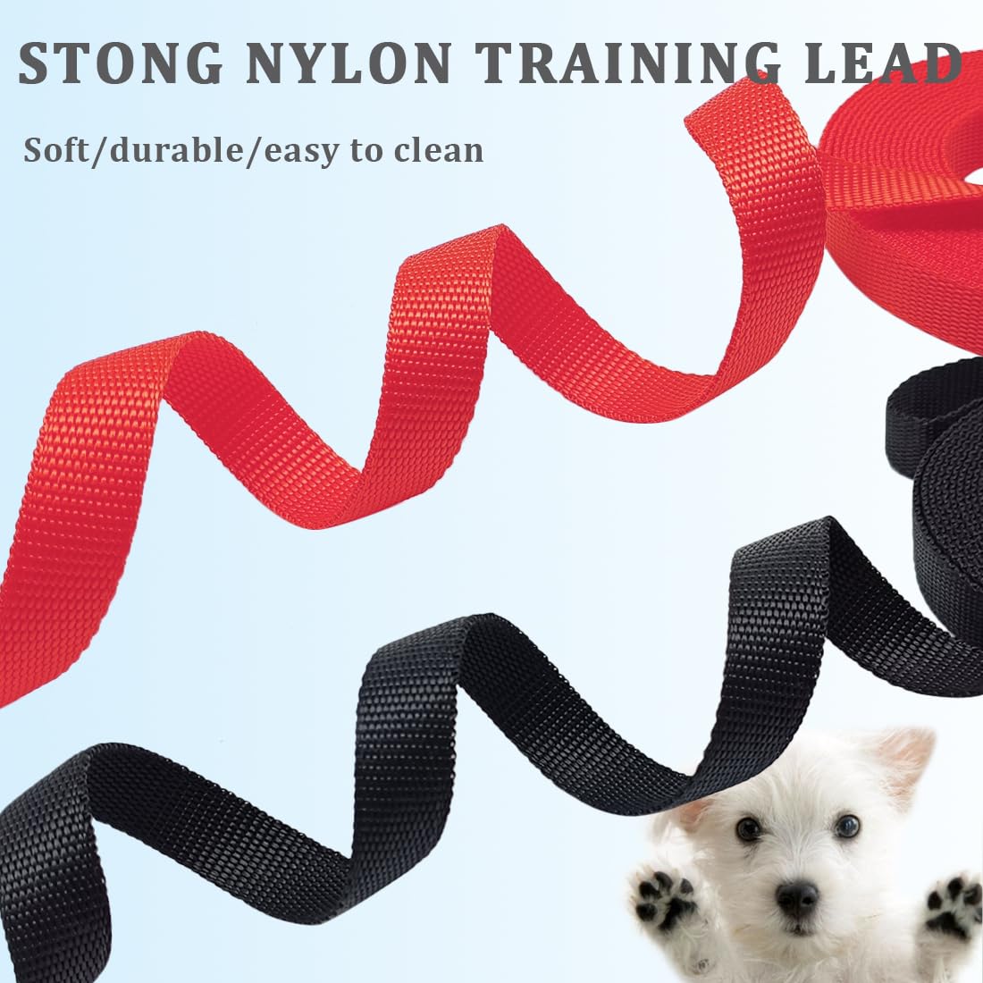 Wyuze 2 Pack Flat Nylon Dog Leashes, 6/10/20/30/50Ft Long Recall Dog Training Lead, 3/4 Inch Wide Traditional Leash For Small Me