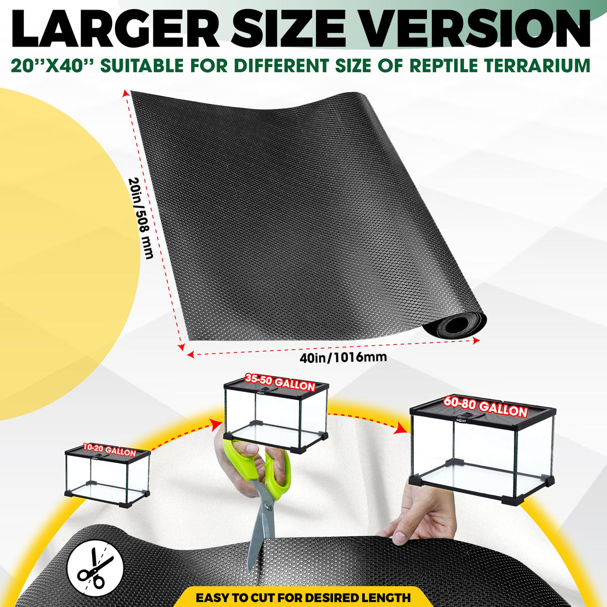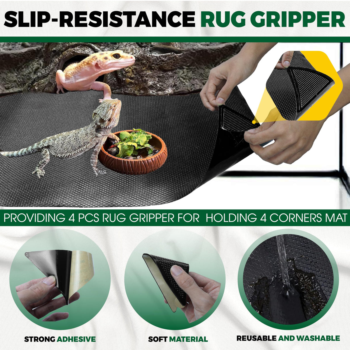Reptile Substrate Mat - Premium Quality And Versatile Habitat Solution Larger Size Version Reptile Substrate Mat Carpet Thickness Is Up To 1 Mm, Increasing Heat Resistance. Total 40 Inches Of Length, Allow To Cut For Desired Length. Including 4 Pcs Rug Grippers To Hold The 4 Corners Of The Carpet In Place. Reptile Safe Material Made Of Top-Notch Non-Toxic Eva Ensuring Strength And Lasting Durability. Easy To Clean, Waterproof, And Has Good Heat Absorption To Help Maintain Your Reptile'S Warmth Versatile Use Ideal For Many Kinds Of Reptiles Such As Bearded Dragons, Leopard Geckos, Tortoises, Snakes, Lizards, Turtles, Ball Pythons,... Suitable For Any Size Of Tanks From Small Tanks Like 10-20 Gallons, To Large Tanks Like 80 Gallons Packing Information 1 Pcs Reptile Substrate Mat, Not Including Tank 4 Pcs Rug Grippers.