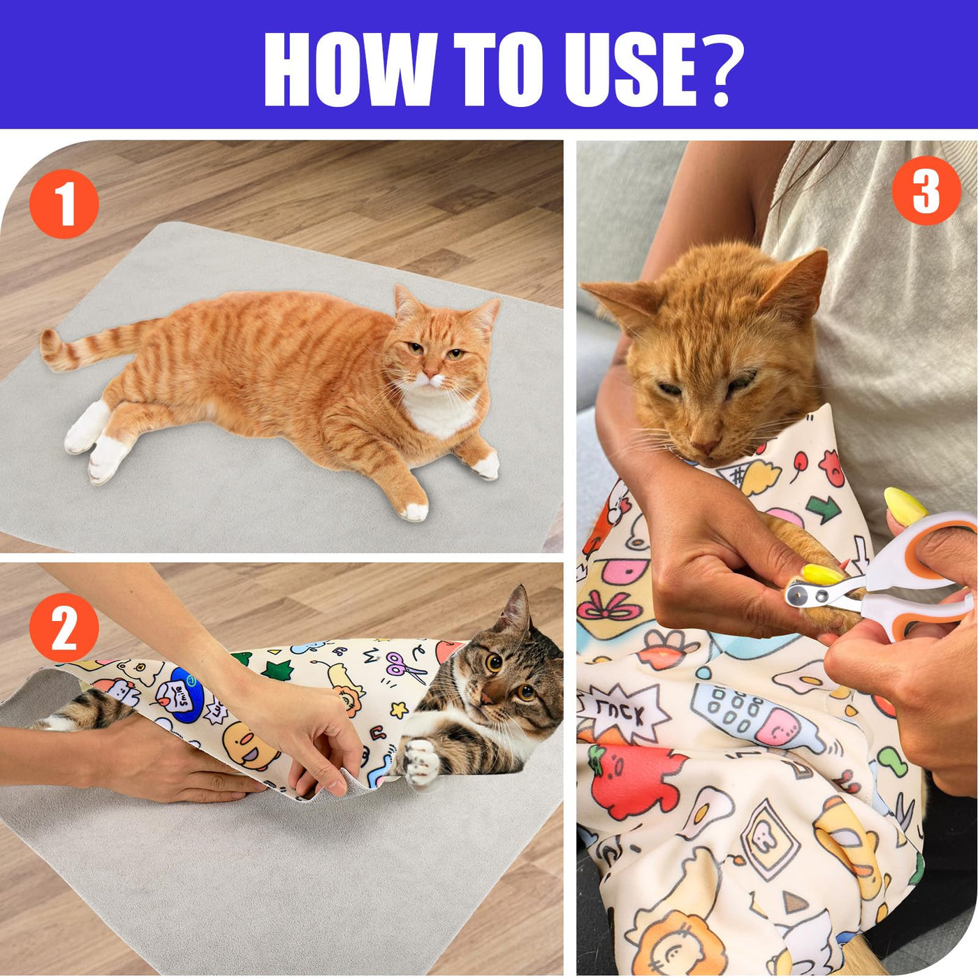 Xangnier 2 Pcs Cat Wrap For Grooming,Cat Restraint Wrap For Cutting Nails,Fabric Burrito Wrap For Nail Clipping, Anti-Scratch, A