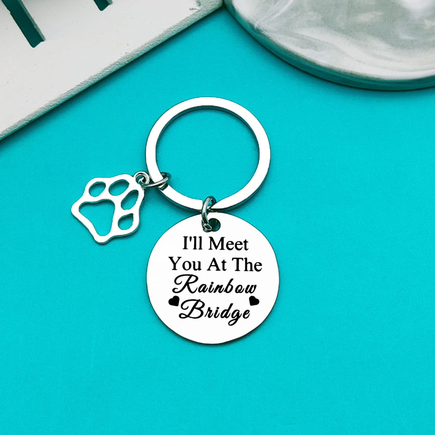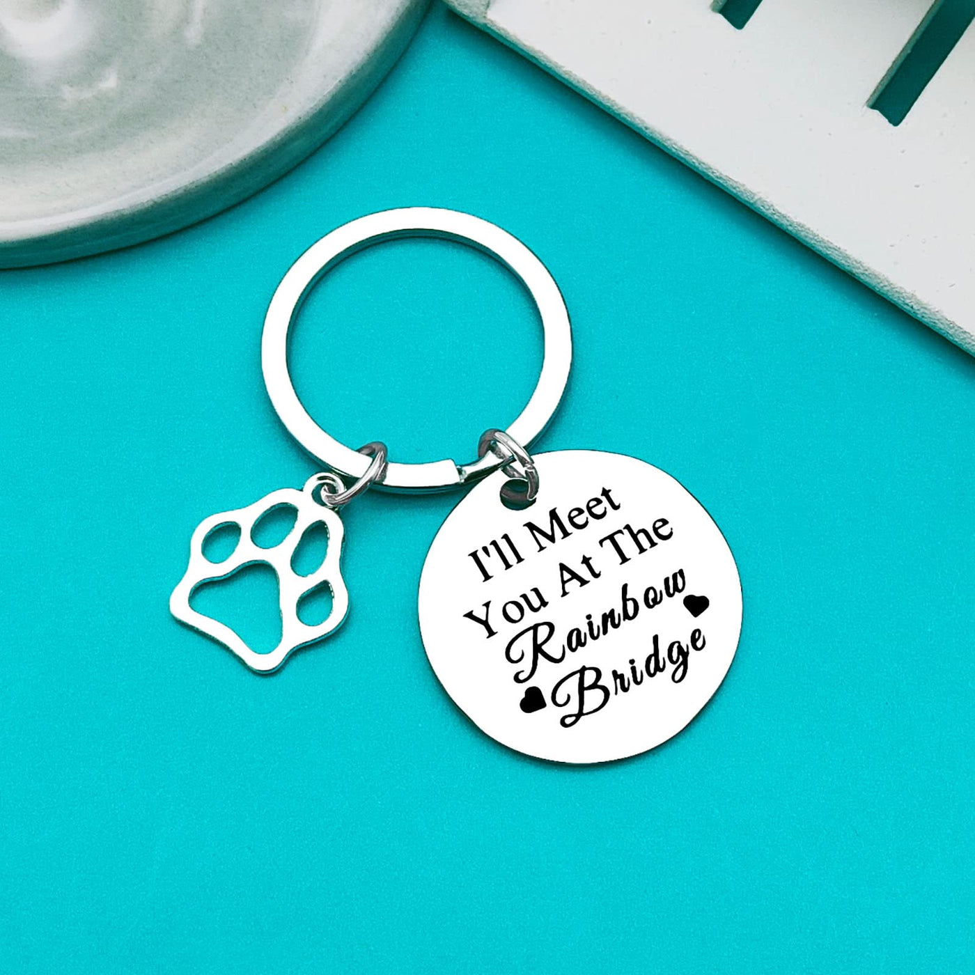 Xiahuyu Pet Memorial Keychain Pet Loss Gifts I'Ll Meet You At The Rainbow Bridge Keychain Cat Dog Memorial Gifts Pet Owner Remem