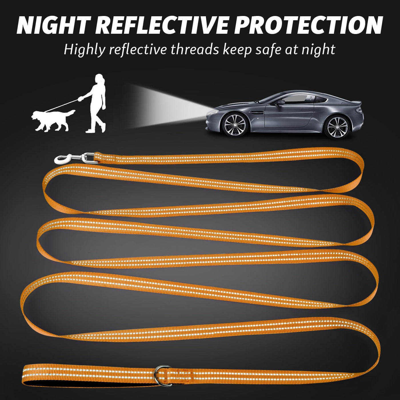 Long Dog Leash 15Ft Xiaz Orange Dog Training Leash Small Medium Dogs 15 Feet Orange Dog Leash Reflective Puppy Leash Nylon Dog Lead Padded Handle Training Playing Camping Backyard
