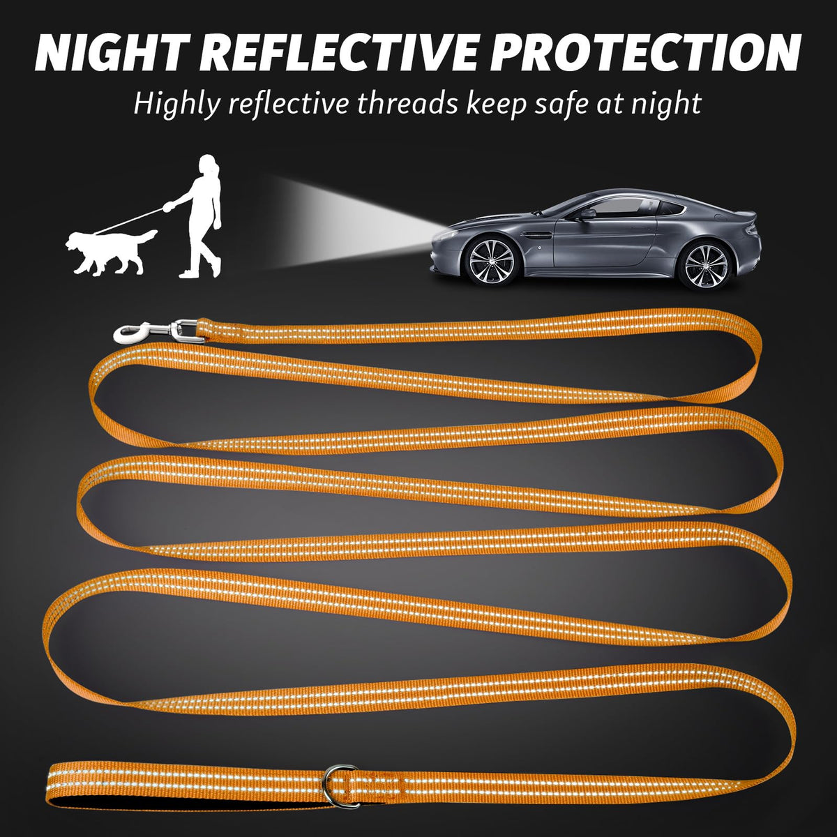 Xiaz 20 Feet Dog Training Leash, Nylon, Orange, Reflective, Padded Handle, 550 Lbs Bearing, Lightweight Suitable For Small, Medi