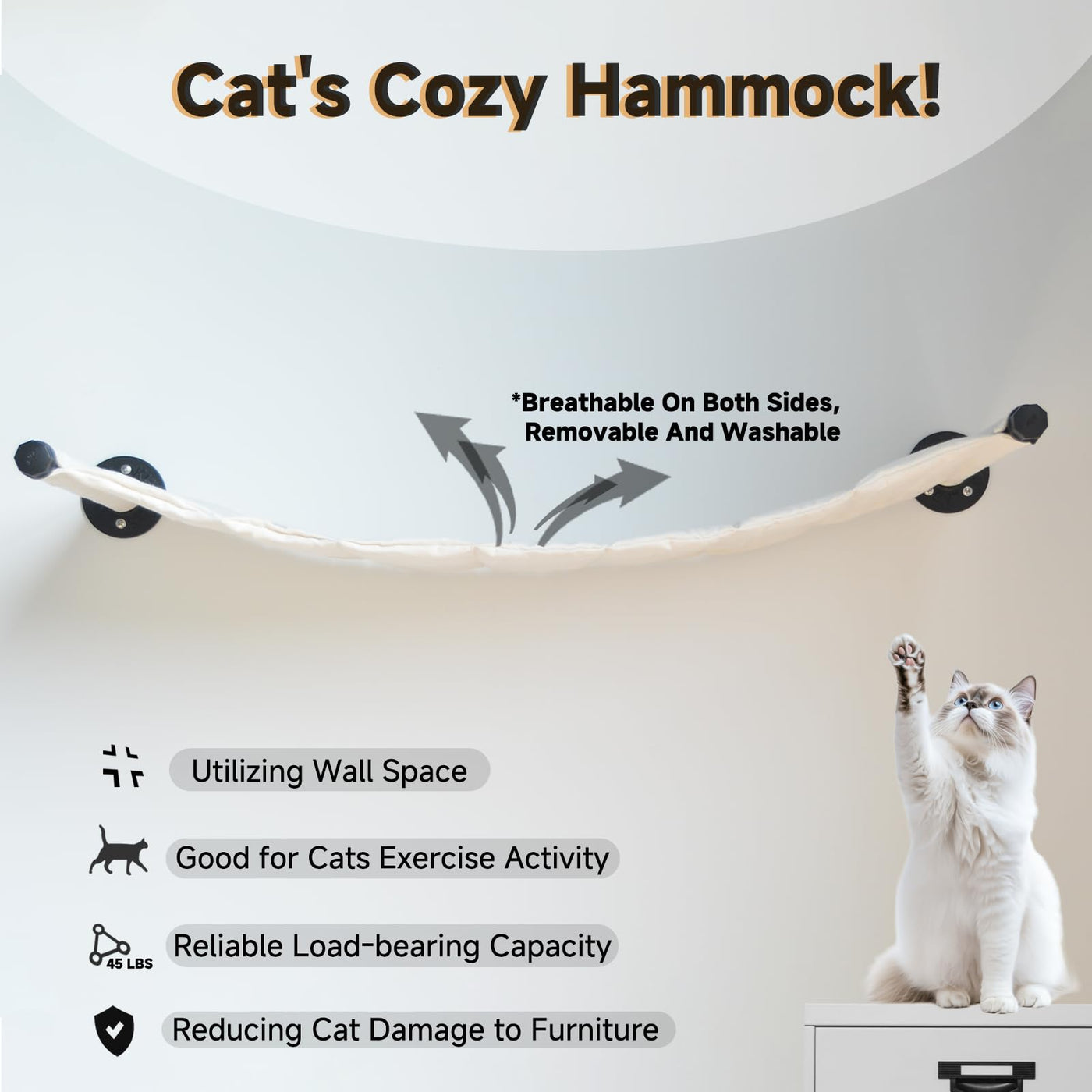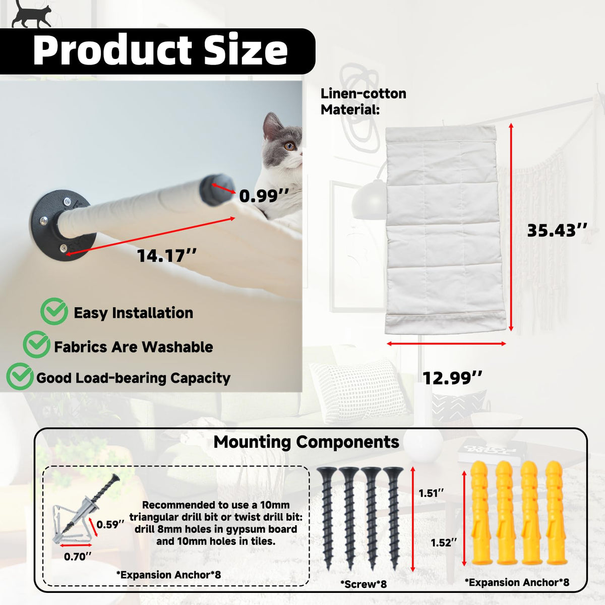 Xifowe Cat Hammock Wall Mounted, 35.43 X 12.99 Inch Wall Mounted Cat Shelves, Metal Brackets Cat Beds For Sleeping, Playing, Cli