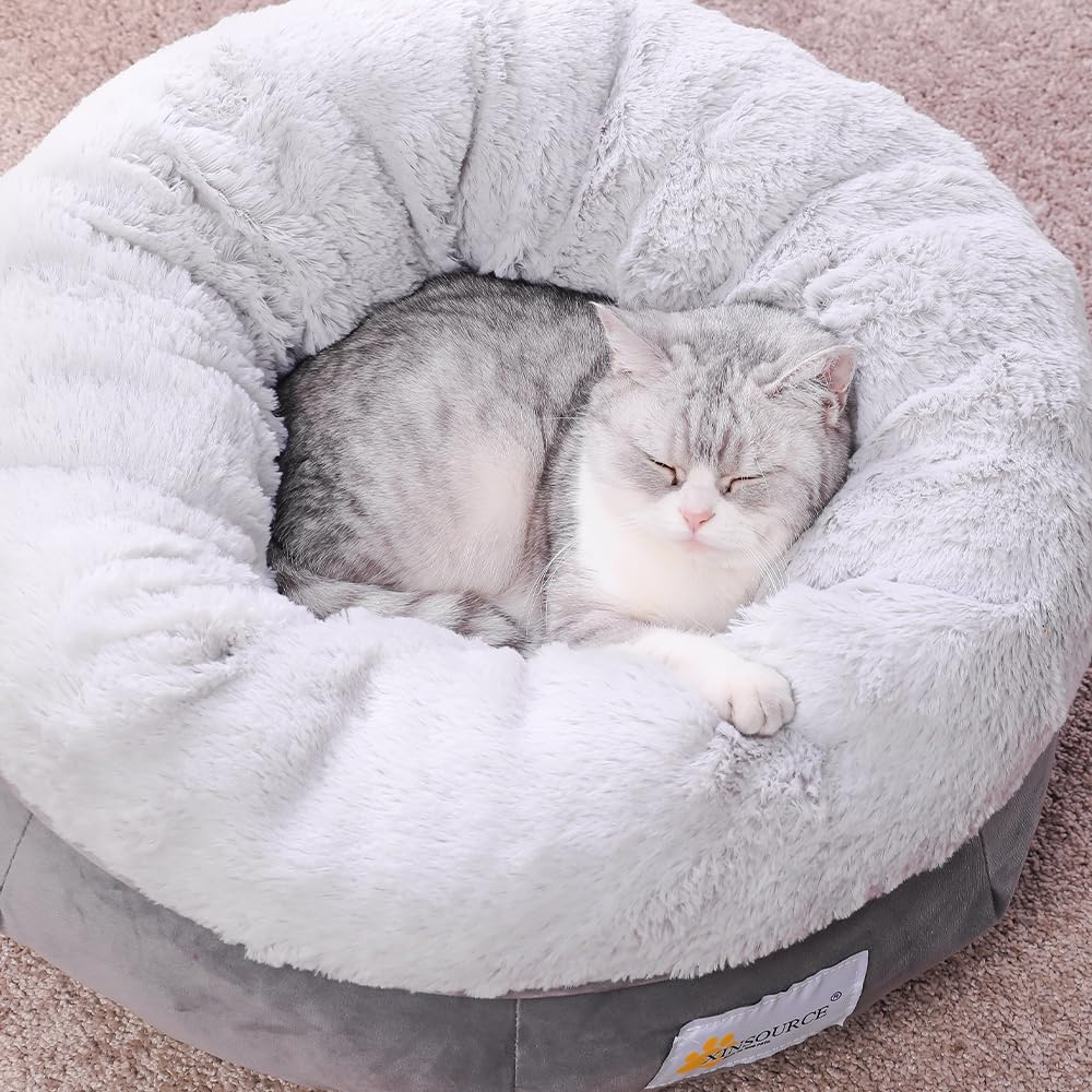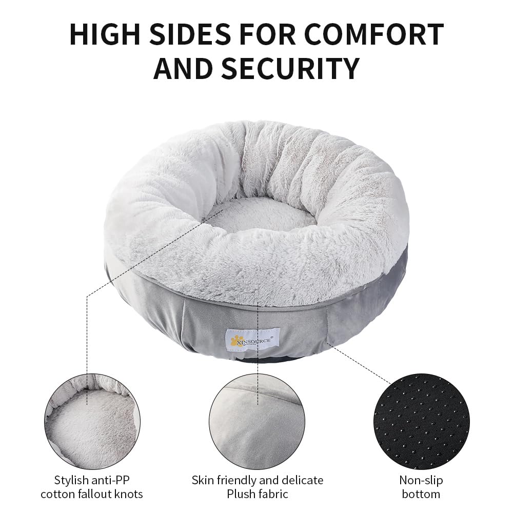 Xinsource Cozy Round Pet Bed, Cats Bed, Dogs Bed. Super Soft Plush Interior For Ultimate Comfort. High Walls Provide Extra Suppo