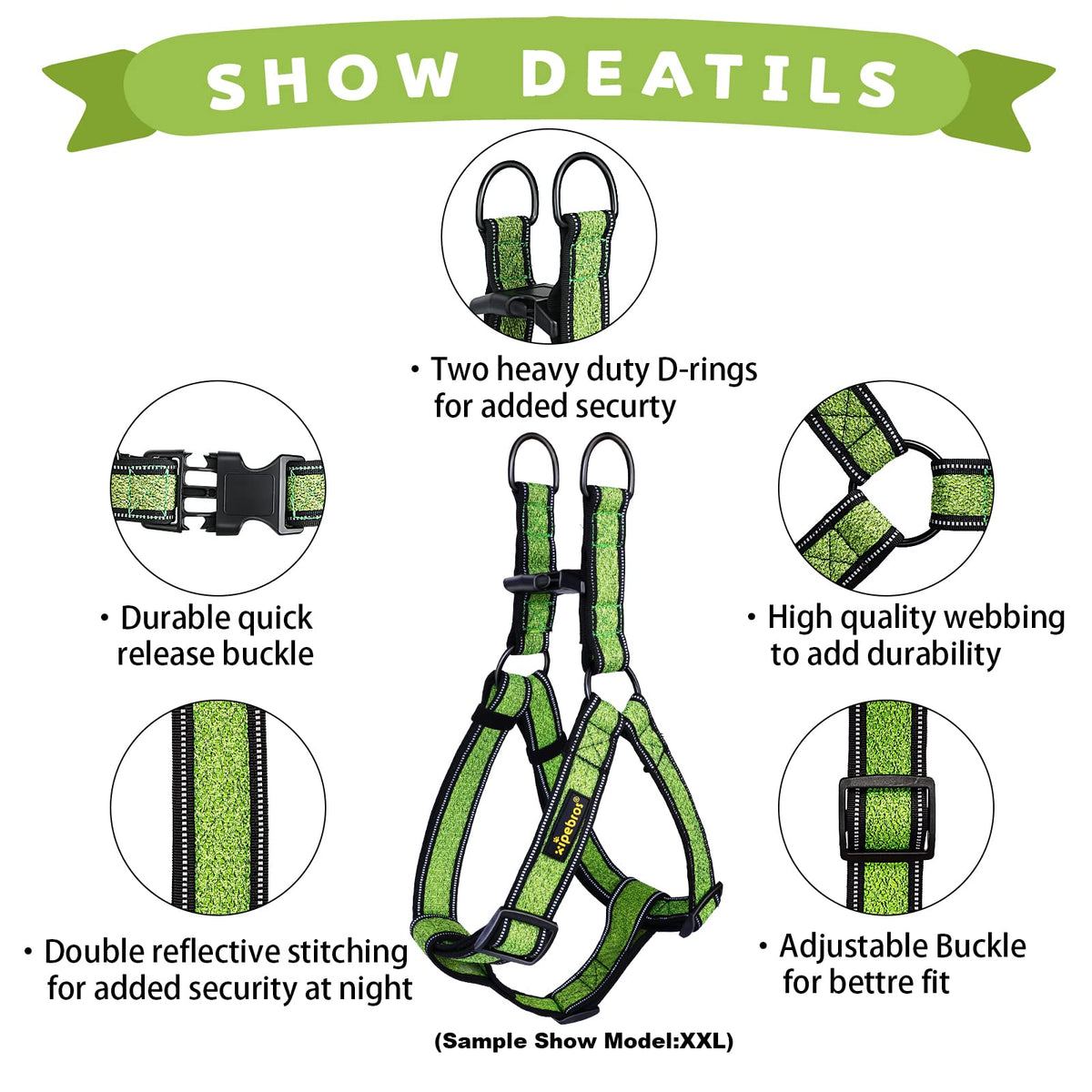 Xipebros Dog Harness,No Pull Dog Harness With Reflective Adjustable,Stops Pets From Pulling And Choking On Walks,Dog Harness For Large Dogs (Green, Xxl)