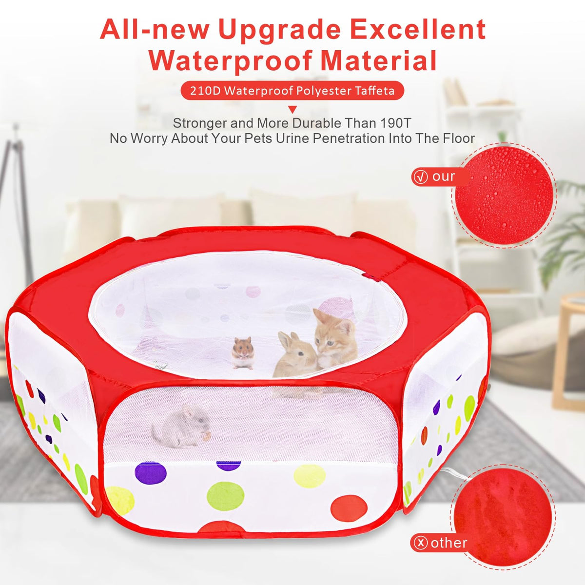 Small Animal Playpen, A Great Pet Sports Playpen With Top Cover Anti Escape, Can Be Used For Indoor And Outdoor Activities, Or Camping Outdoors Or Playing In The Park. The Great Features Of Xirgs Small Pet Playpen: 1.1/2Net, You Could Watch Your Pets At All Times. 1/2Cloth Will Increase The Difficulty Of Hamster'S Jailbreak. 2. Waterproof Bottom: It Is Made Of Similar Material Like Umbrella, Don'T Worry About The Pee Problem When Playing Indoor Now. 3. Folding Design : It Can Quickly Create An Interactive Area Between Owners And Pets. When Your Pet Comes Back To The Cage, The Playpen Can Be Put Away Immediately. It'S Very Convenient And Fast 4. Top Cover Design:. New Generation With Top Cover, The Small Pet Playpen Is No Need For Complex Splicing, Built In Frame. The Pet Transport Cage Can Be Opened In Seconds And Folded Back Flat When Not In Use, Also It Is Easy Storing. In Addition, The Playpen For Kitten Has A Cover, So The Small Animals Will Not Run Out When It Is Zipped. An Interactive Area Can Be Created Quickly Between Owners And Pets. Warm Tips: When It Is Opened Under Spring Pressure, It Should Be Away From Children And Your Face. 5. Portability: It Can Be Reduced To The Palm Size. Can Be Placed In A Backpack.And When You Travel With Your Pet,This Is A Good Choice. 6. Suitable For Puppy, Kitten, Cat, Rabbits, Hamster, Hedgehogs, Chinchillas, Reptile Or Other Small Animals. Specification: Weight: 0.38Kg Folded Size: Diameter 9Cm/ 3.5In Height:2.5Cm/1In After Expansion Size: Length(115Cm/45In) Width:(60Cm/23.6In) Height:(38Cm/15In) Package: 1*Small Animals Playpen 1*Storage Bag Notice: The Small Animal Playpen Is A Place Where Pets Play Games. We Recommend That Your Pets Be Monitored At All Times.