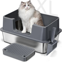 This Extra-Large, Half-Closed Stainless Steel Litter Box Gives Your Cat Plenty Of Space. High Walls Prevent Spills, And It Includes A Leak-Proof Mat And Scoop For Easy Cleanup. Enjoy A Cleaner Home!