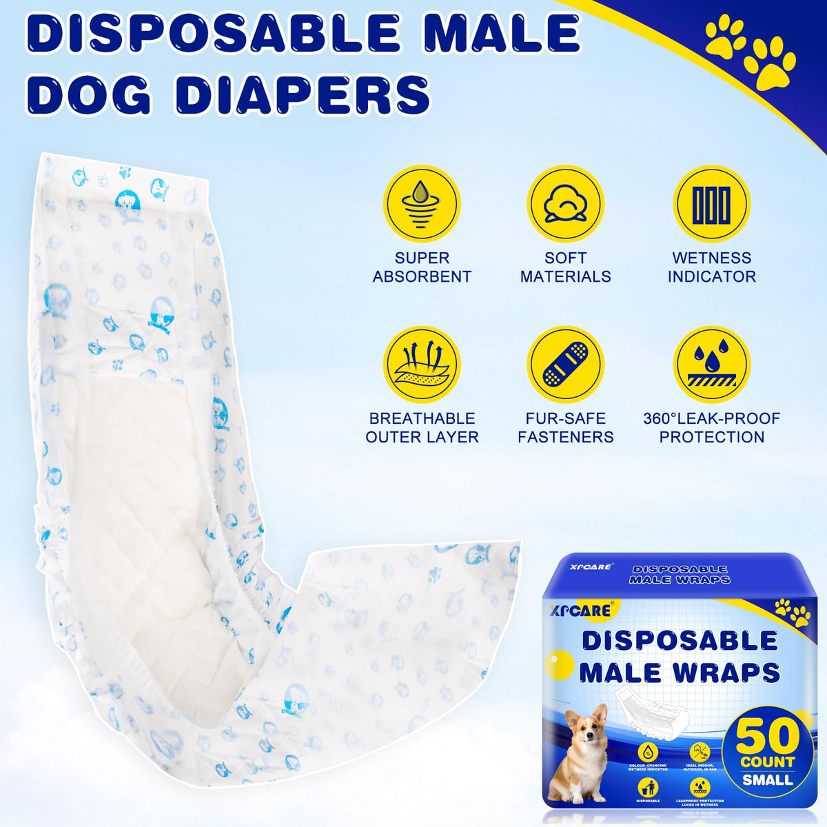Xpcare 50 Count Disposable Male Dog Diapers, Male Dog Wraps,Super Absorbent Leak-Proof Fit (Small)