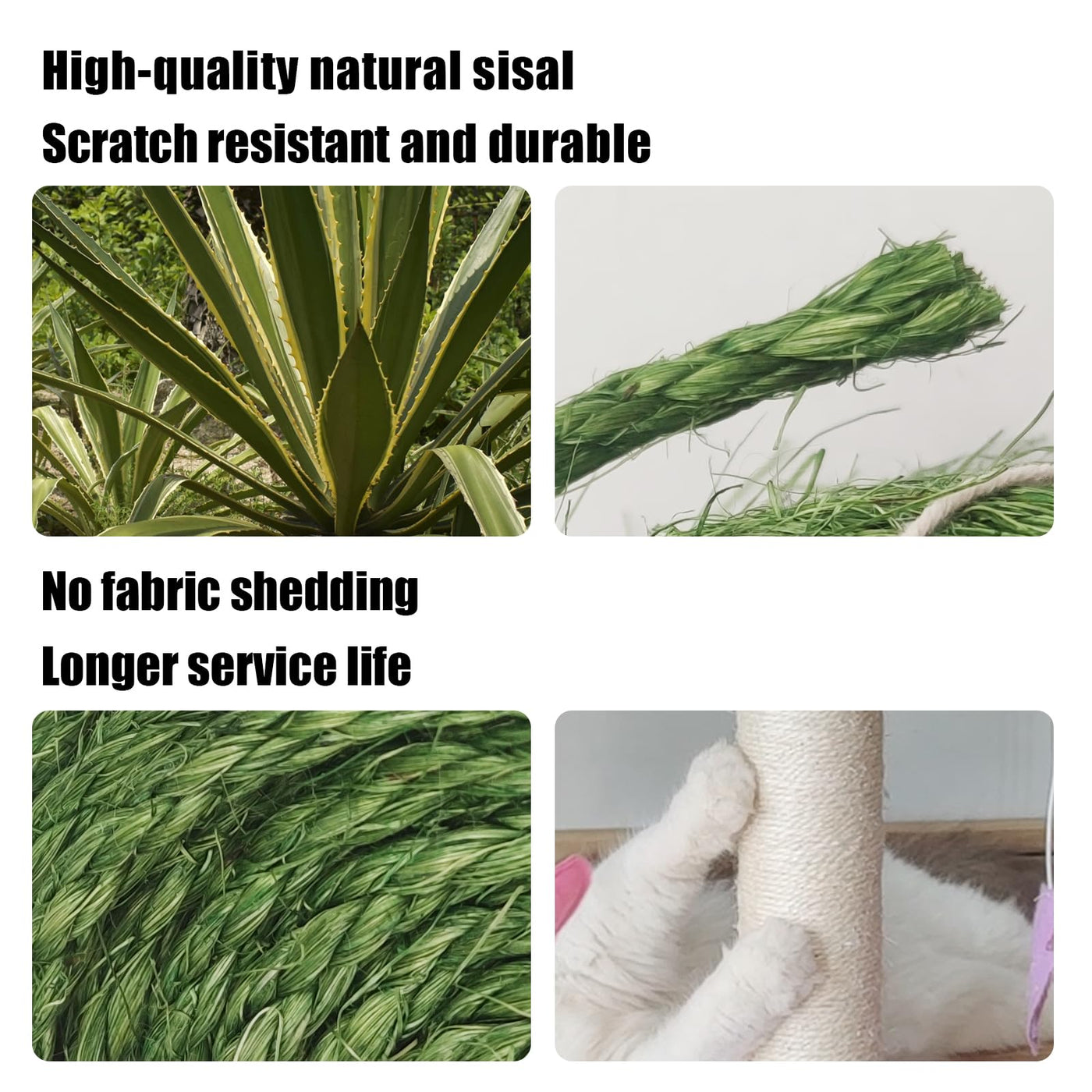 All Natural Material: Made of natural sisal fibers our cat scratch post replacement rope are harmless to humans and animals a bit rough for humans but that's what cats love and need.