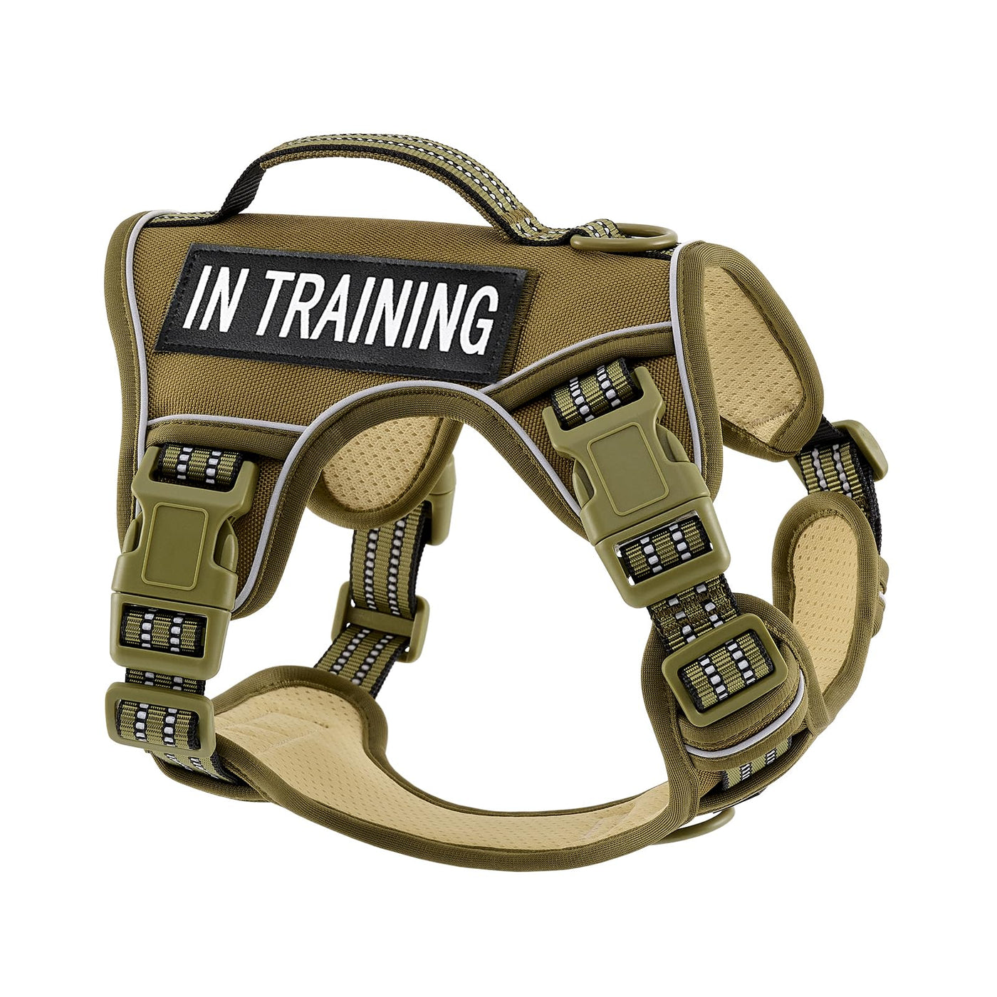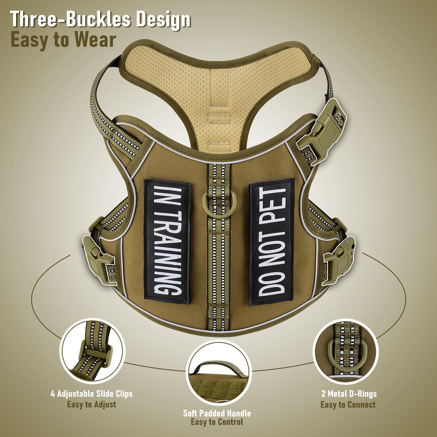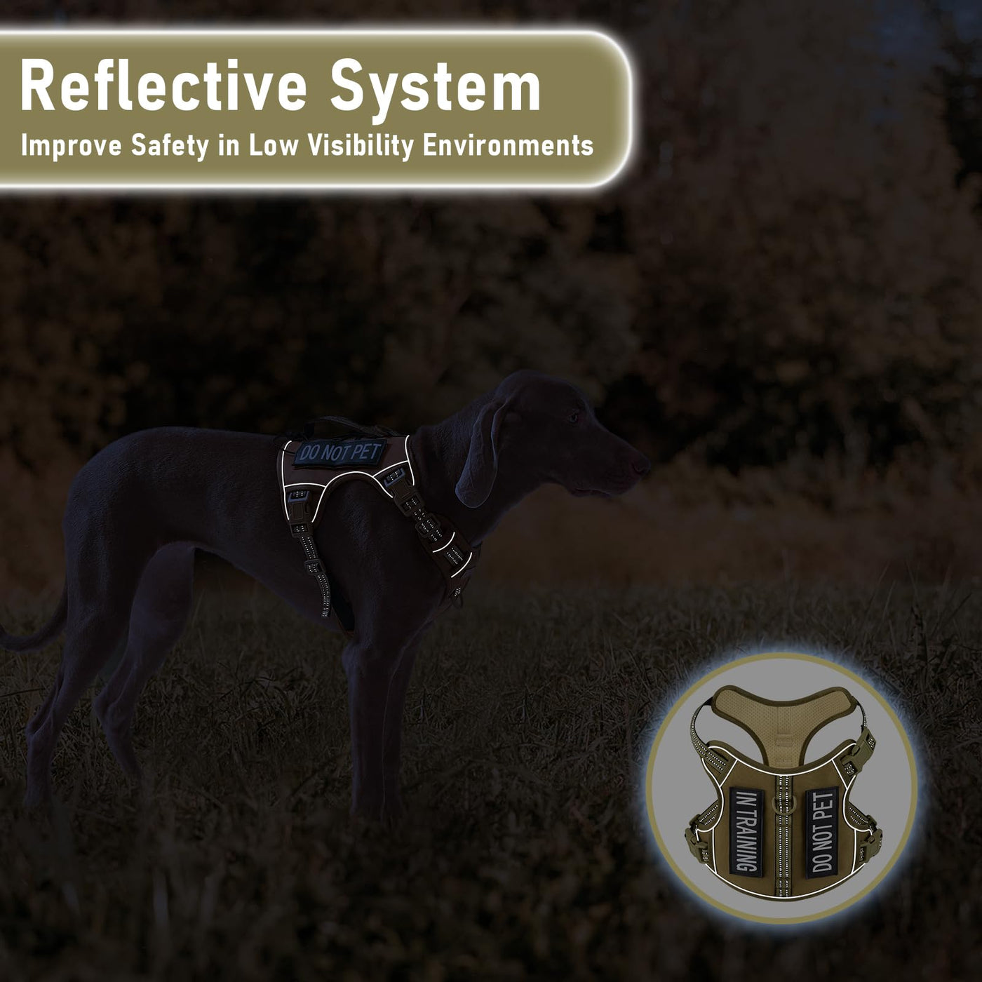 Breathable And Comfortable- Our Harness Is Made Of Durable Nylon Oxford And Padded With Soft Cushion To Protect Your Dog'S Skin. Breathable Air Mesh Keeps Your Dog Cool During Outdoor Activities. Super Reflective- The Reflector Points Are Very Bright. Having It In Our Harness That Reflects Light Gives Your Dogs A Lot Of Safety That Eases Your Anxiety When You Are Chasing Them Barefoot Down The Road In The Dark, You Can Spot Them Right Away. It Is Really Safe For Nighttime Walking. 4-Way Fully Adjustable- Our Adjustable Harness Has 4 Easy Adjusting Straps. You Can Use Its 2 Neck Straps And 2 Chest Straps To Create A Perfect Fit For Your Dog. It Is Easy To Adjust To A Larger Size As He/She Grows. No Worries About Slipping Out Or Choking. There'S A Snap Buckle Closure At The Side Of The Neck, And Then One On Each Side Of The Torso Part. So, All Your Dog Has To Do Is Stand There, Let You Unclick The 3 Closures And It Falls Right Off Of Her/Him. 3 Buckles Make It So Easy To Put This Harness On Your Dog And Take It Off, All Done By Yourself, Without Another Person'S Help. Also, You No Longer Have To Try To Slide A Harness Over Your Dogs Head. Both D-Rings ( Front & Back ) Are All Metal, Very Strong. The Front D-Ring Allows You To Have Full Control Over Dogs And Give Them Better Comfort. The Back D-Ring Is Ideal For Daily Dog Walks, Jogging, Or Hiking. Theres A Handle To Help Control When Your Dog Gets Excited For Going On Walks. It Will Allow You To Grab Dogs Quickly And Get Better Control Over Them Than A Leash Or Grabbing Their Collars Would Do. It Also Can Be Used In The Car With A Seat Belt Attachment And Dogs Are Secure In Case Of An Accident Or Stopping Short.