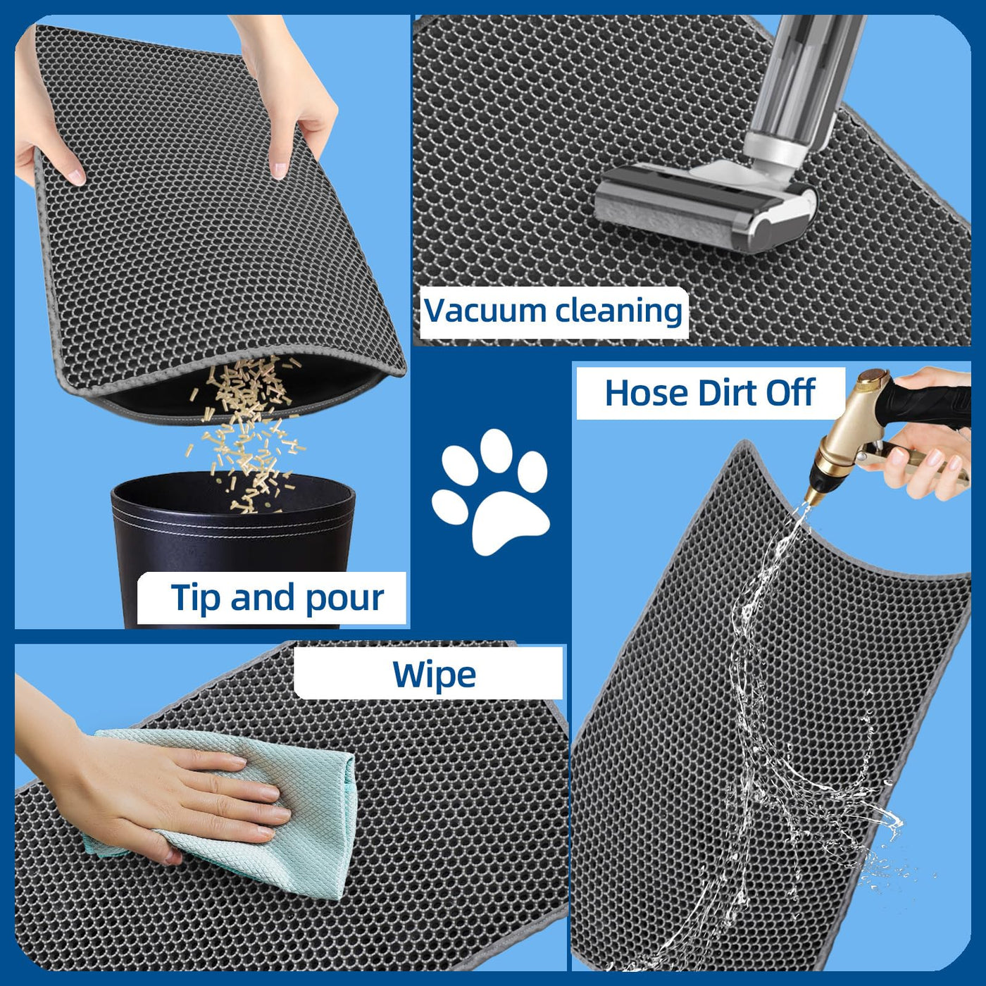 Xuanyaente Large Cat Litter Mat The Xuanyaente Large Cat Litter Mat Measures 30X24 Inches And Is Designed For Large Litter Boxes, Effectively Preventing Litter Spills And Keeping Your Floors And Home Tidy. Its Honeycomb Texture Traps A Significant Amount Of Litter, Reducing The Frequency Of Cleanups. To Clean, Simply Lift The Top Layer Of The Mat, Allowing The Litter To Concentrate In The Center Of The Bottom Layer For Easy Transfer Back To The Litter Box Or Disposal. Stubborn Dirt Can Be Cleaned By Rinsing The Mat In The Sink Or Under The Shower. The Mat Is Waterproof And Slip-Resistant, Ensuring Safety For Pets And Easy Maintenance. Phthalate-Free And Durable, Its An Ideal Choice For Every Cat Owner.