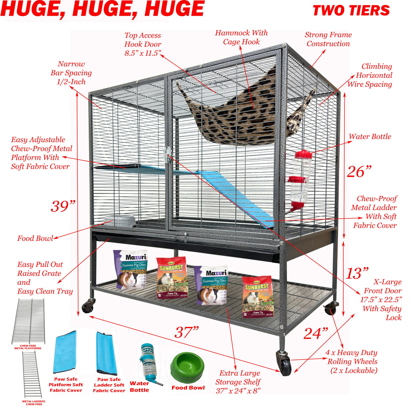 Xx-Large 37''X24''X39''H Two Tiers Chew-Proof Large Double Large Front Doors Tight 1/2-Inch Wire Spacing For Feisty Ferret Hammo