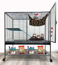 This Cage Offers Plenty Of Space For Even The Most Energetic Ferrets To Run, Jump And Play. Cage Comes Complete With Ramps, Shelves, And Even A Hammock To Keep Your Fuzzy Friend Entertained And Content. Featuring Two Large Doors, You Are Able To Easily Access Your Pet While Ferrets Can'T Open These Escape-Proof'' Doors. Platforms Grille And Bottom Tray Are All Easily Removed For Convenient Cleaning. Castered Stand Provides Portability From Room To Room While The Space Saver Shelf Holds Toys Treats And Supplies.