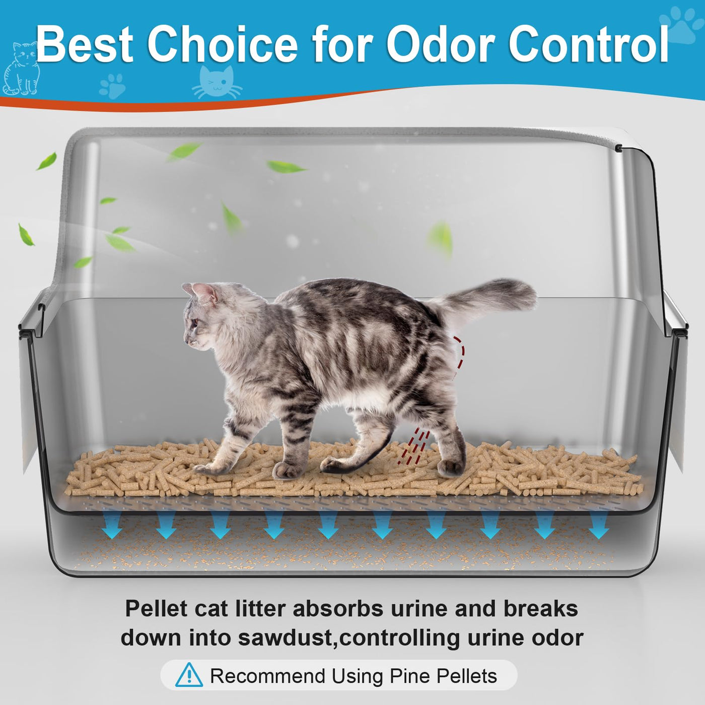 Xxl All Stainless Steel Sifting Litter Box With Lid,Sifting Cat Litter Box For Wood Pine Pellets,High Sides Sifter Litter Pan Sy