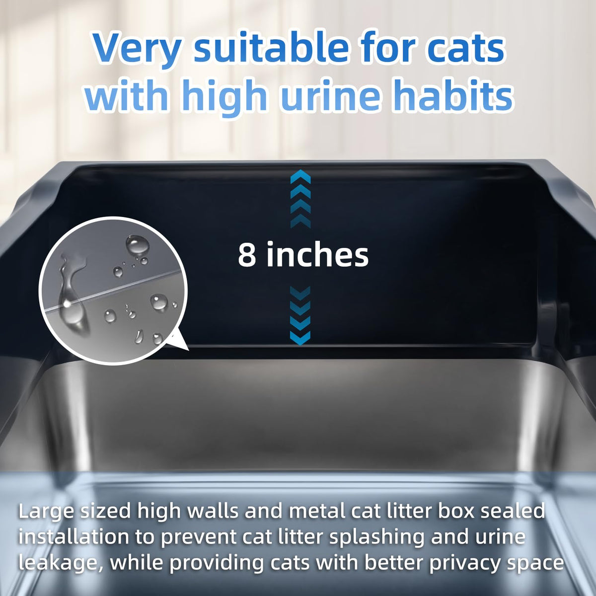 This navy blue stainless steel litter box is not only functional but also complements your home decor. The expert design encourages your beloved cat to use it comfortably, reducing stress during the transition from smaller litter boxes.