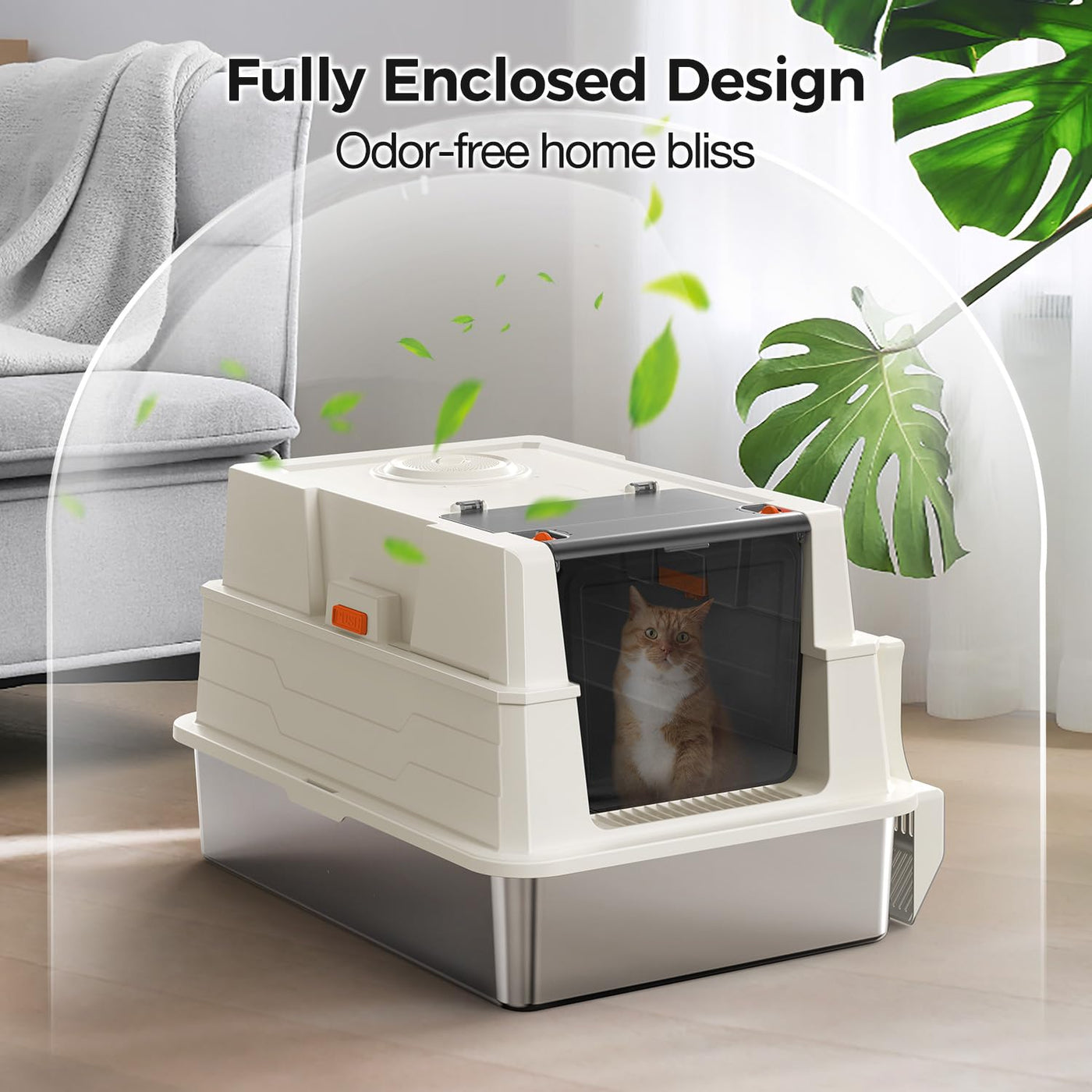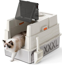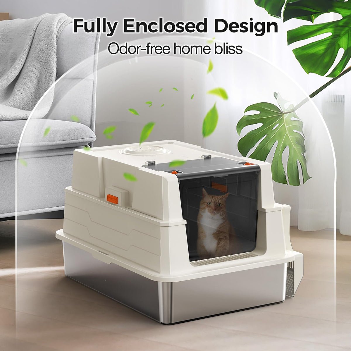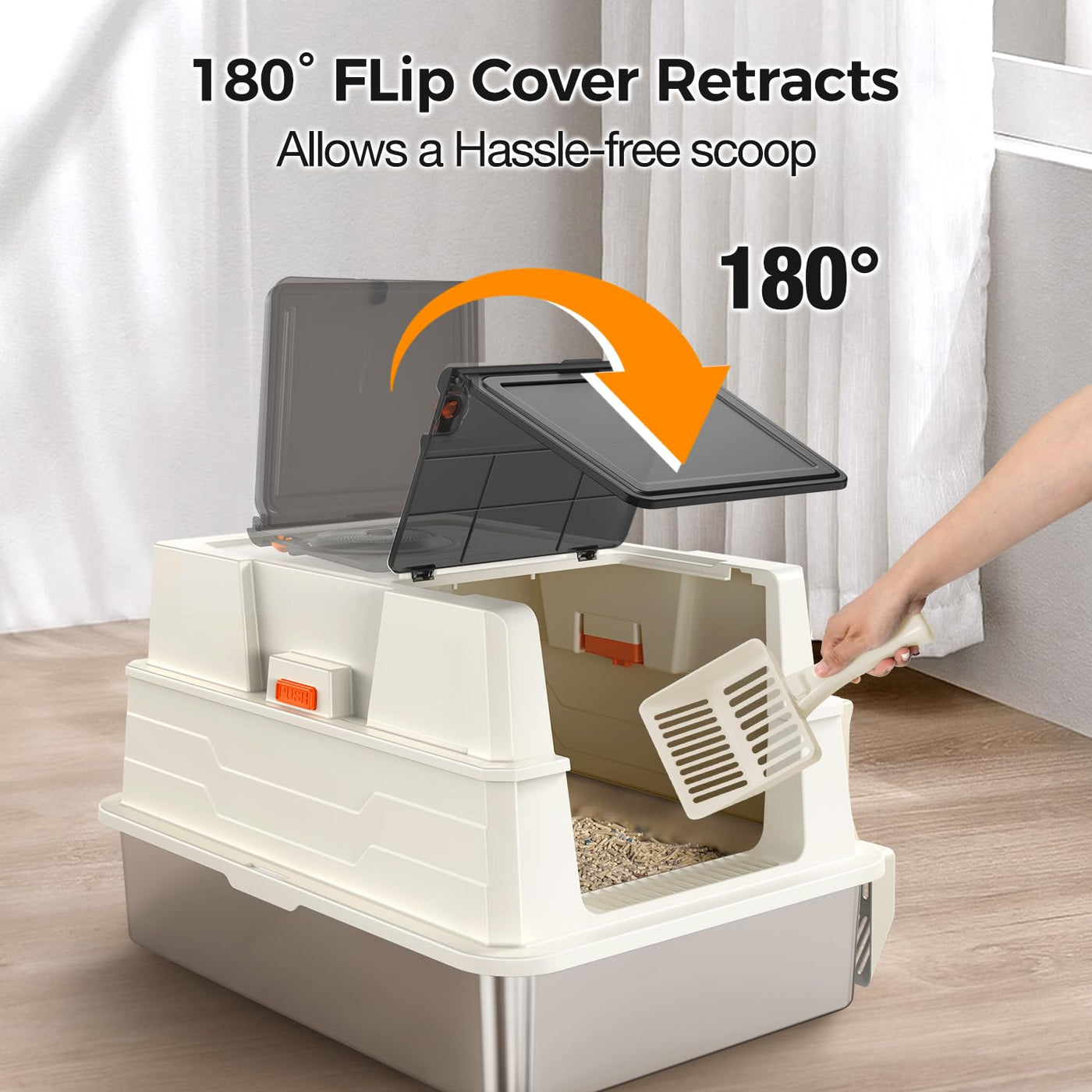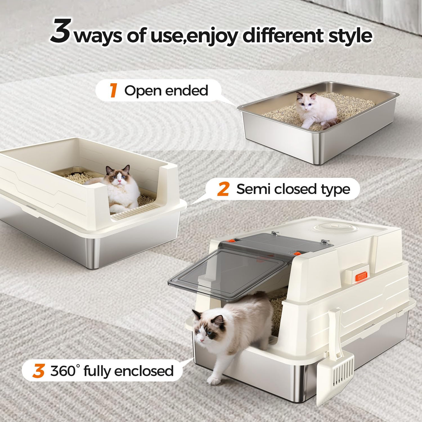 Xxxl Stainless Steel Litter Box With Lid,28 L X 20.5 W X 16.5 H Extra Large Cat Litter Box Enclosure For Large And Multi-C