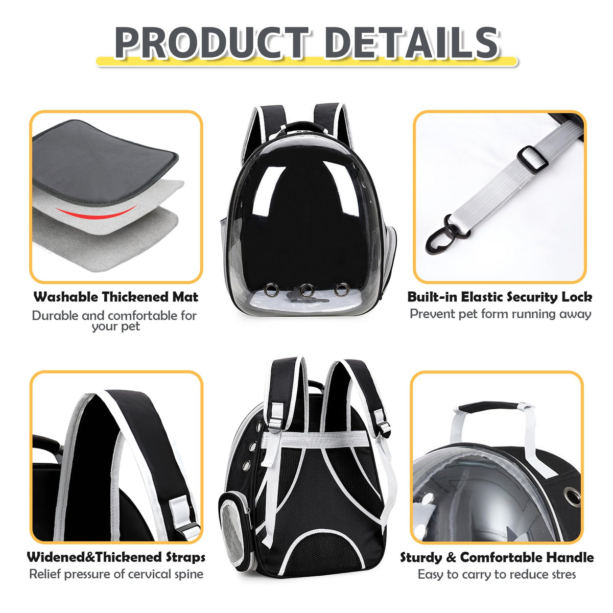Product Specification: Product Size: 14.17 X 9.84 X 17.32 (L X W X H), 2.66Lb. Load-Bearing Weight: 0-13 Lb. Feature: Ventilate And Comfortable, With Ventilation Holes, Semi-Sphere Bubble, Zippers And Soft Mat, Offer A Maximum Accessibility And Comfortable Interspace For Your Pet Safe And Durable, Removable Mat Cover, Makes Your Pet Feel More Comfortable Large Size For 14.17 X 9.84 X 17.32 (L X W X H), Can Hold Up To 5-13 Pounds Cats, Dogs And Other Small Pet Airline Approved Pet Backpack, Approved By Most Major Airlines, Which Fitting Under Any Airplane Seat. Enjoy A Good Flight With Your Pets Easy To Clean, You Can Simply Switch Out The Removable Mat Cover To Wash Up When Dirty