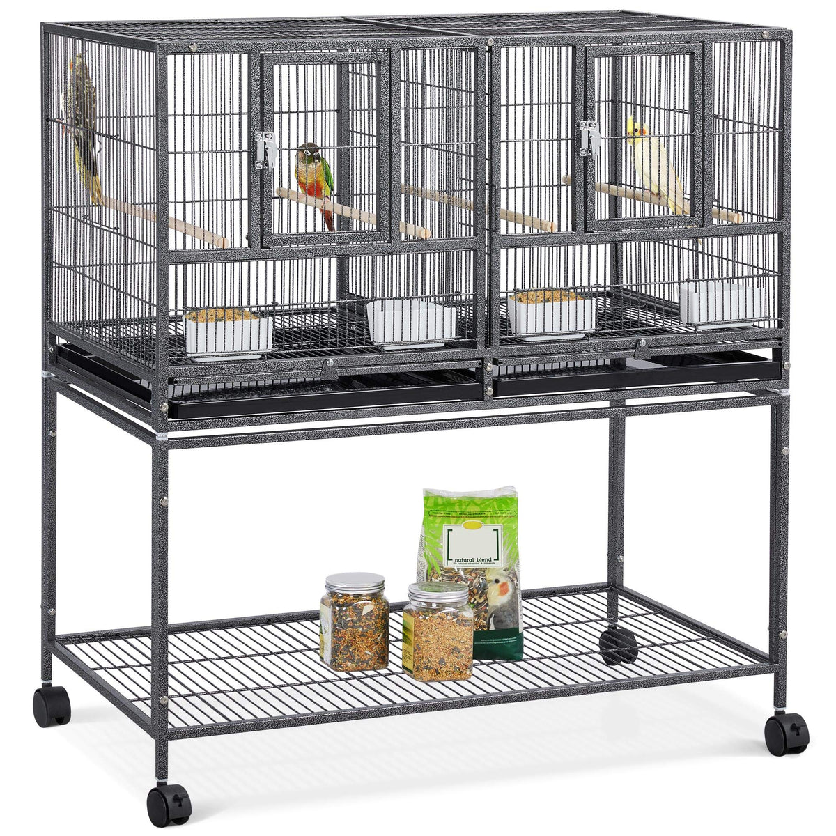 Yaheetech 41.5 Stackable Divided Breeder Breeding Parakeet Bird Cage for Canaries Cockatiels Lovebirds Finches Budgies Small Pa
