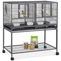 Divided Breeding Cage: The dividing grate helps divide this wide bird cage into two individual breeding/living spaces for housing two or more birds. Each bird cage system contains 2 perches, 2 feeders, a front door with lock, a side nesting door, pull-out tray and grate | Ideal for Small Birds: This divided breeder cage measures 37.6