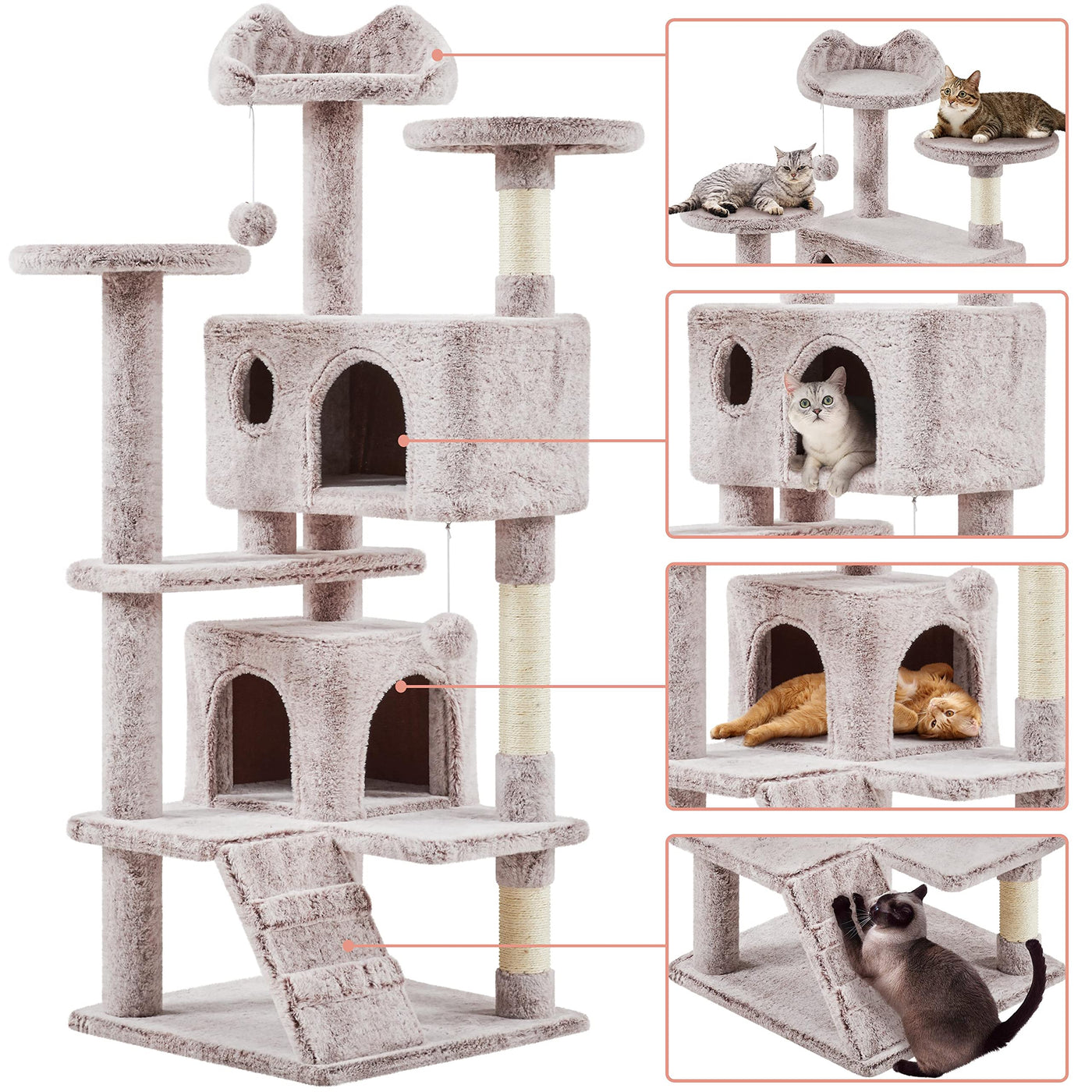 Q: How many cats can the Yaheetech Cat Tree accommodate?A: The Yaheetech Cat Tree is designed to comfortably accommodate 1-2 small to medium cats, providing ample space for play, lounging, and resting.