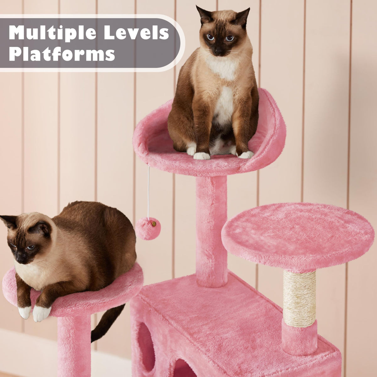 Yaheetech 54In Cat Tree Tower, Multi-Level Cat Tree For Indoor Cats With Scratching Posts, Dangling Balls Cat Play House, Pink