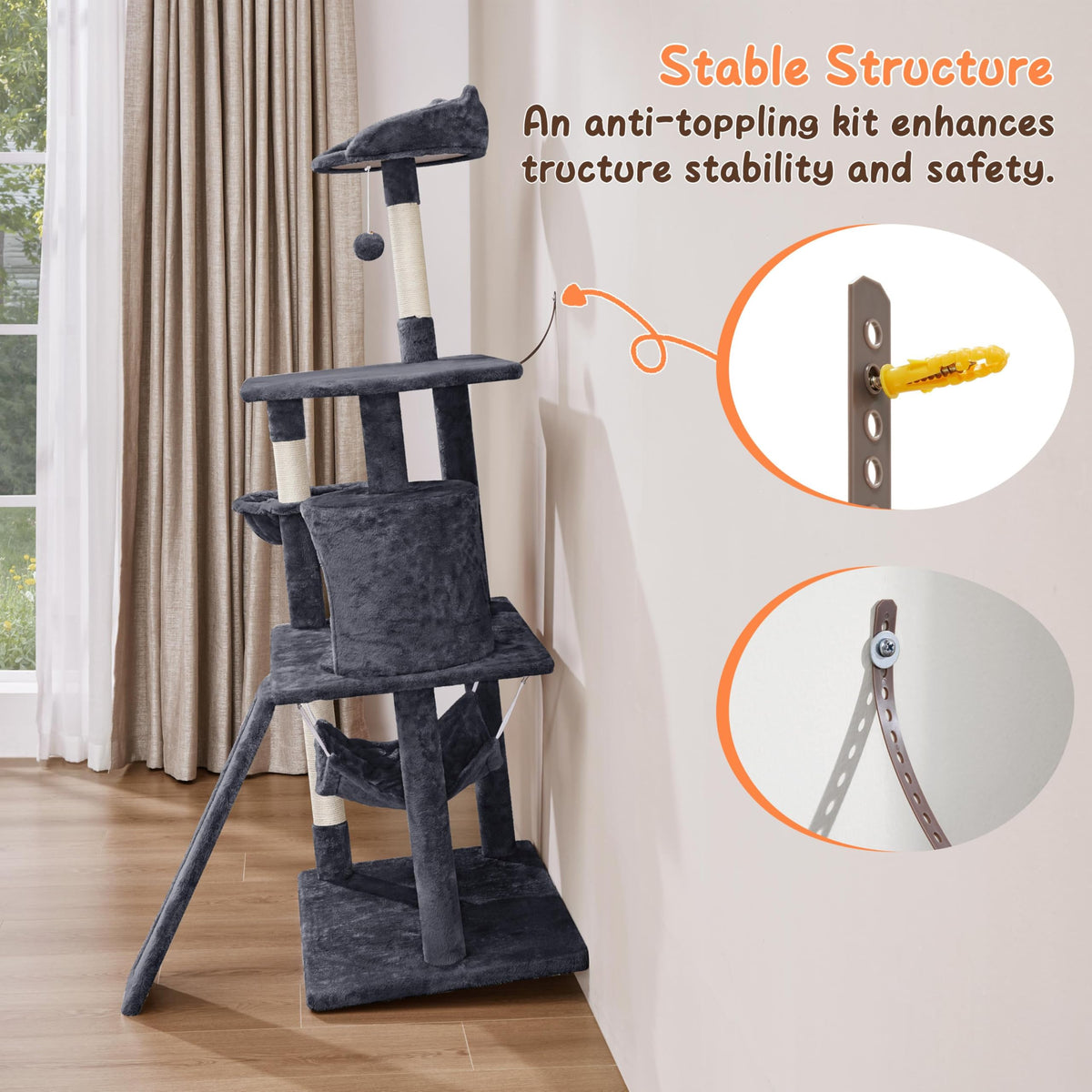 Yaheetech 63.5In Multi-Level Cat Tree Tower Condo With Scratching Posts, Platform & Hammock, Cat Activity Center Play Furniture