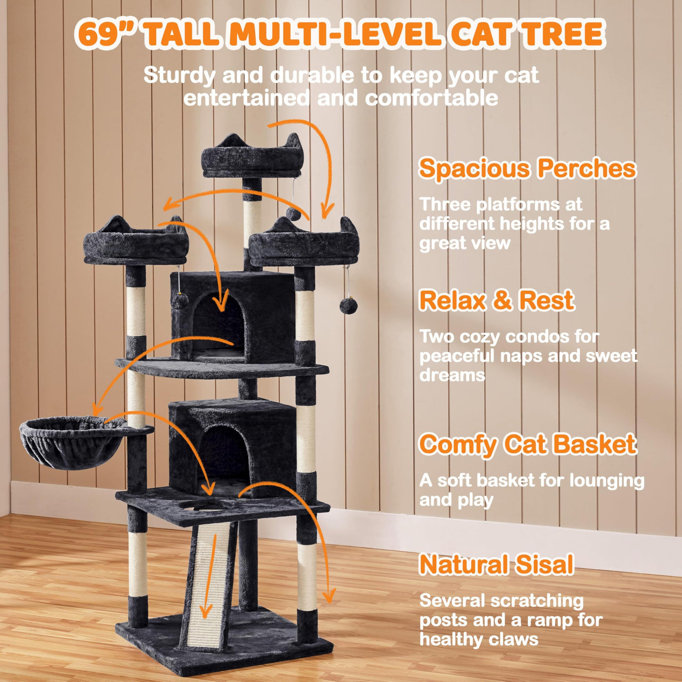 Yaheetech 68.5in Cat Tree Multi-Level Cat Tower with Large Cat Condo&Cozy Perches Stable Pet Play House w/Sisal-Covered Scratchi