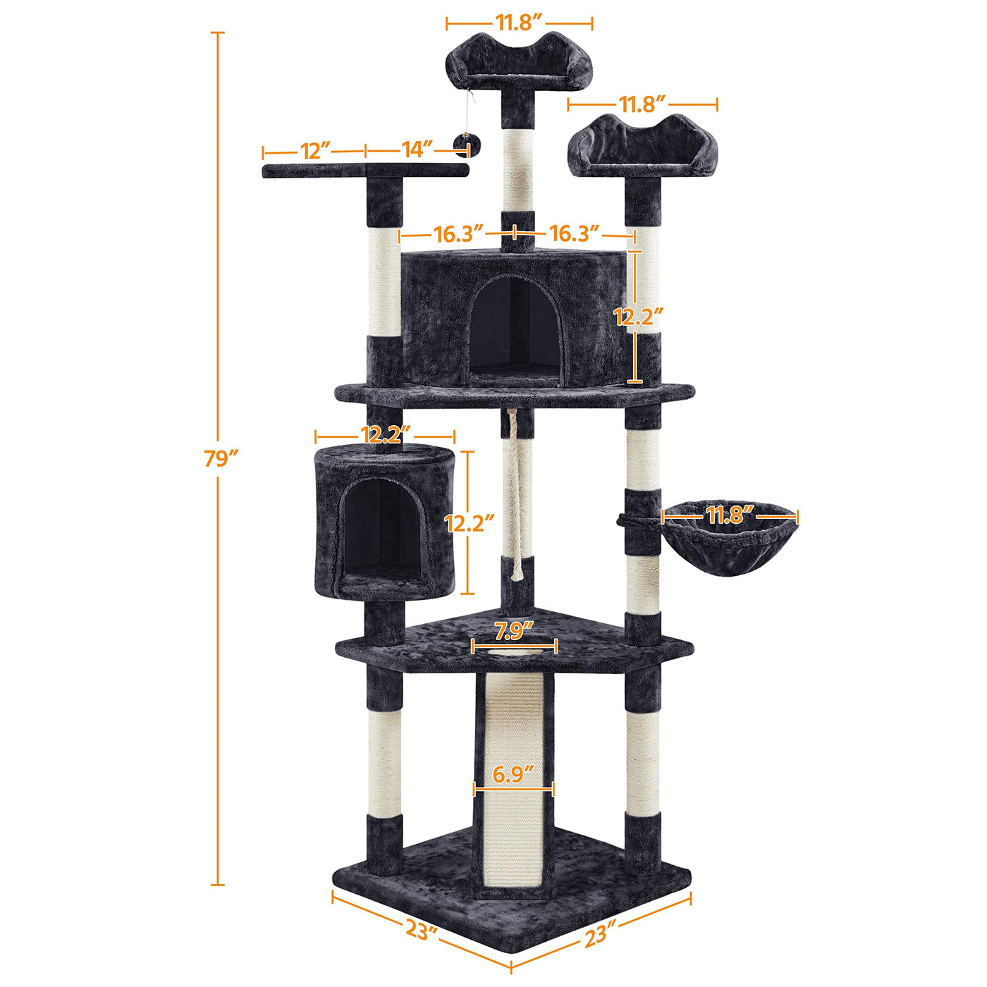 Yaheetech 79 In Cat Tree Tower, Multilevel Cat Trees Plush Covered Cat Tower With 2 Extra Large Condos, Comfy Basket, Sisal Scratching Posts