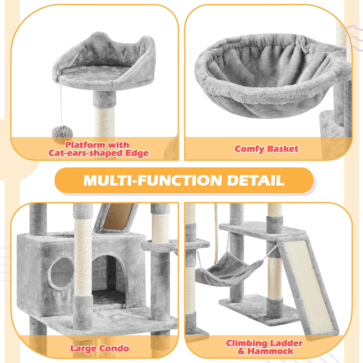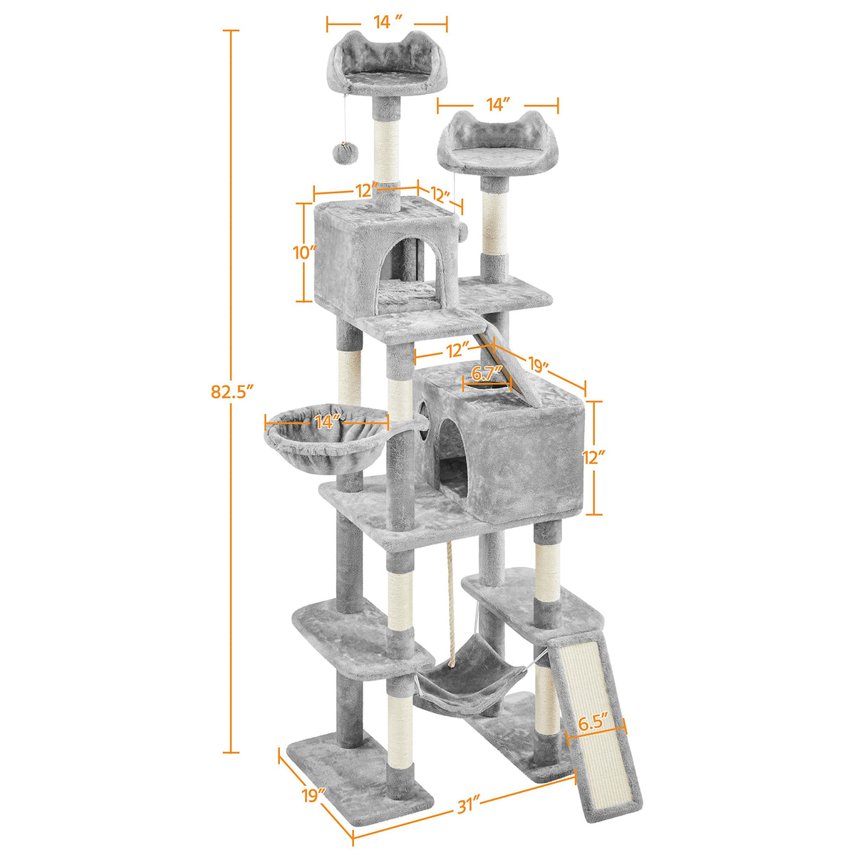 Yaheetech Cat Tree, 82.5In Large Tower W/Hammock, 2 Kitty-Ear Perches, 2 Cozy Condos, Scratching Posts, Basket, Furniture For La