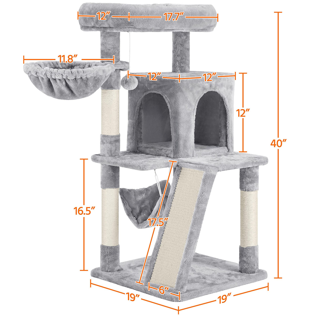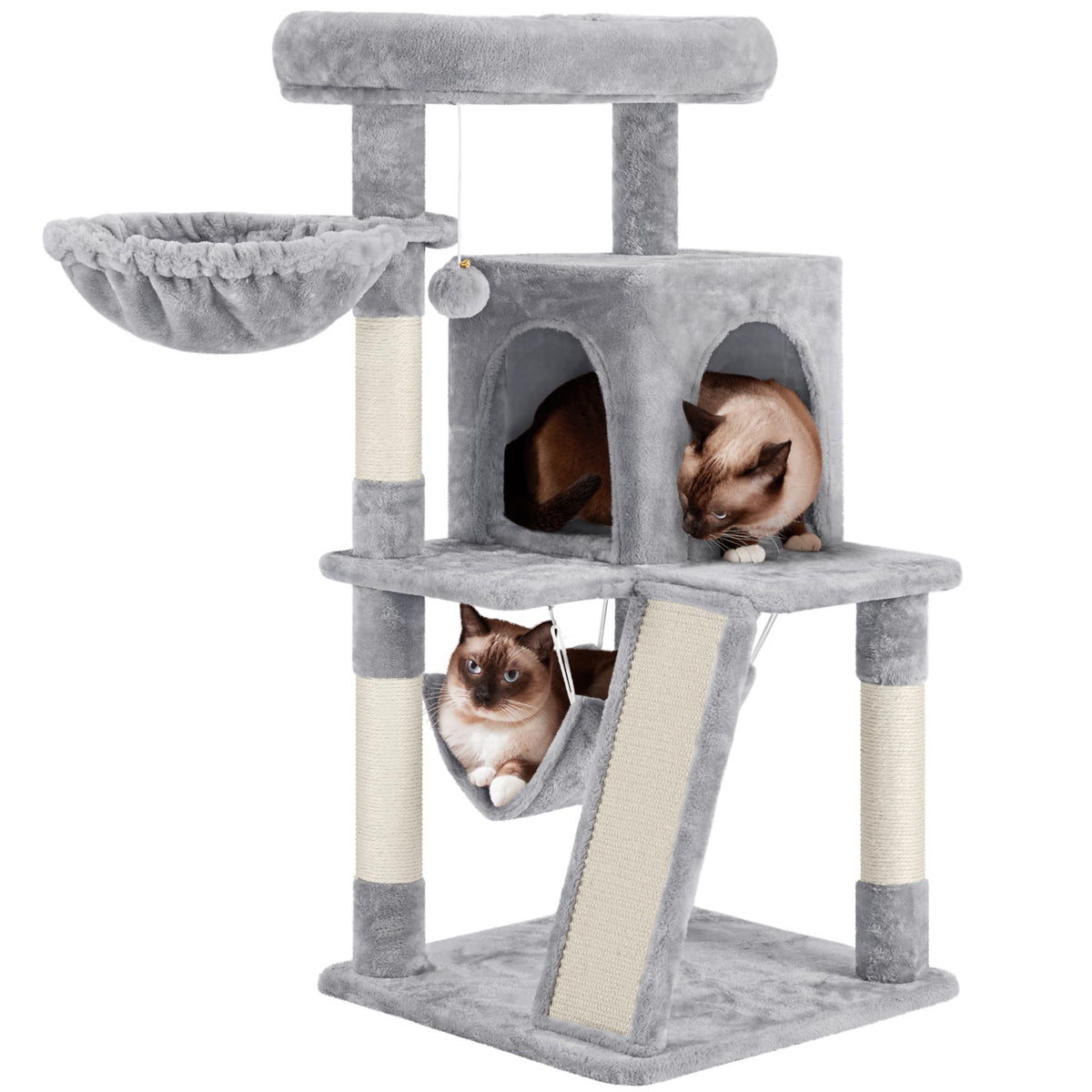 Yaheetech Cat Tree Cat Tower, 40-Inch Cat Condo With Oversized Soft Platform, Scratching Board, Basket And Hammock, Cat Furniture For Kittens Cats Pets, Light Gray