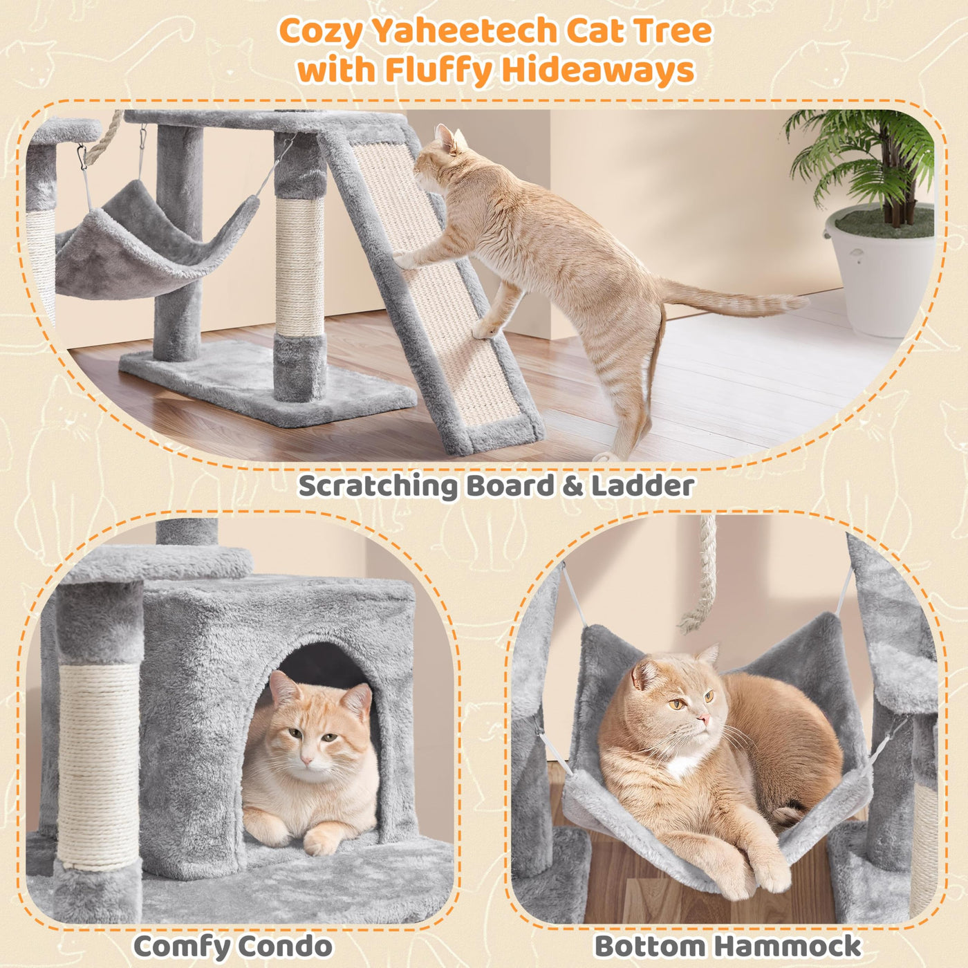 Yaheetech Cat Tree Tower 54in, Multi-Level Pet Stand Furniture with Extended Platform Hammock Scratching Posts Condo for Large C