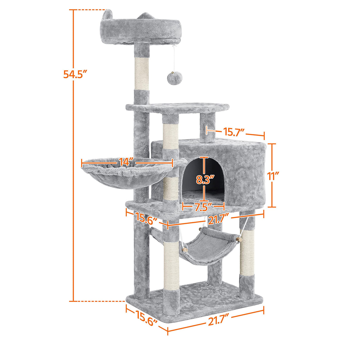 Yaheetech Multi-Level Cat Tree Condo Furniture 54.5', With Large Perch, 2.8'' Sisal Scratching Posts, Hammock, Basket, Fuzzy Ball, Stable Cat Tower Play Center Cat House